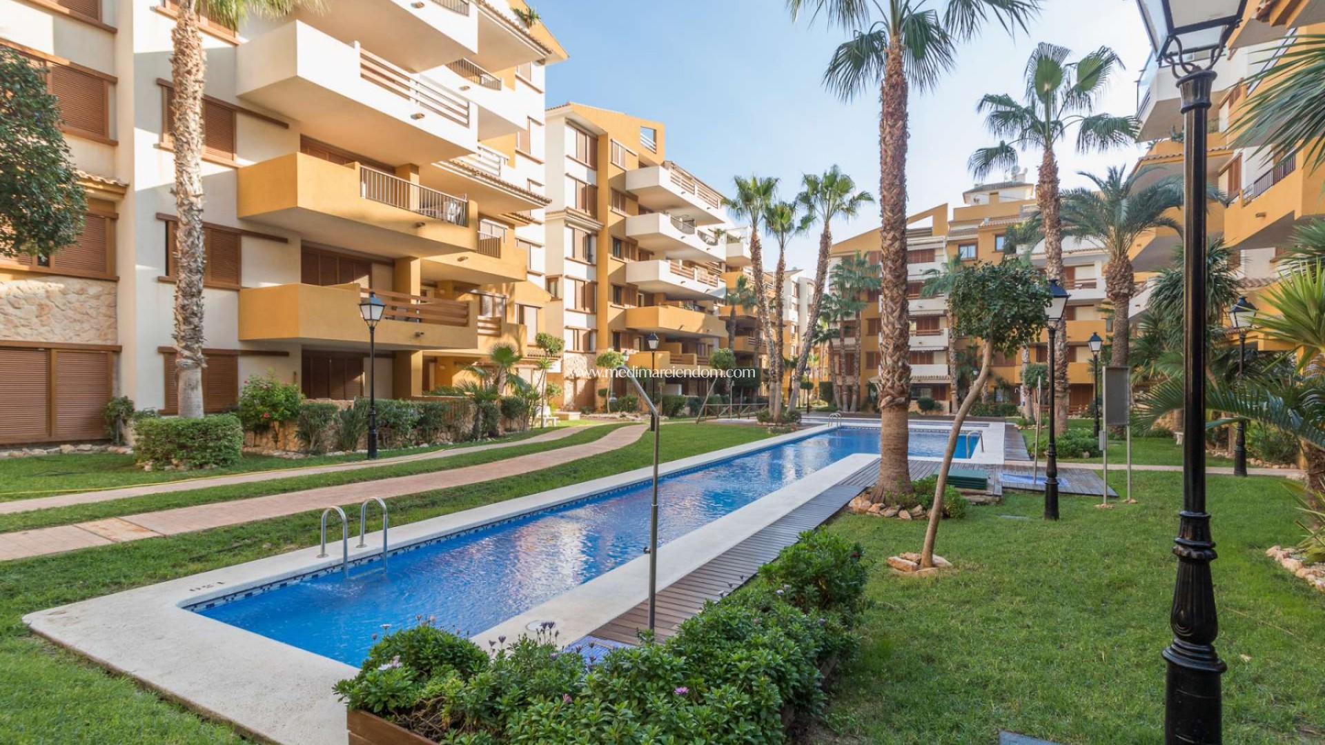 De urbanisatie biedt mooie gemeenschappelijke tuinen met verschillende zwembaden en 24-uurs beveiliging met CCTV-camera's door het hele complex. U bevindt zich op korte loopafstand van het strand en de boulevard in Punta Prima, evenals supermarkten en restaurants. Een perfect gelegen appartement in het hart van Punta Prima, slechts 5 km ten zuiden van het stadscentrum van Torrevieja.