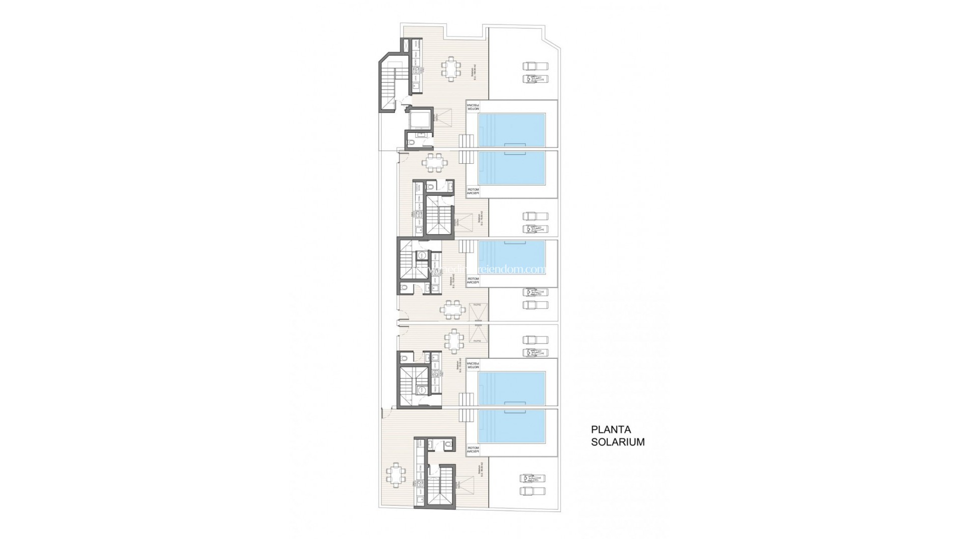 NIEUWBOUW PENTHOUSES IN BENIJOFAR Nieuwbouw residentieel in de rustige omgeving van Benijofar . Residentieel bestaande uit 15 woningen, 5 per verdieping, met 2 of 3 slaapkamers en 2 badkamers. De penthouses hebben ook een groot prive solarium van 75,00 vierkante meter met een toilet en pre-installatie voor een keuken, waar u kunt genieten van de prachtige zomer zonsondergangen. Daarnaast heeft de residentie een grote groene zone met een zwembad voor alle eigenaren, evenals parkeergelegenheid en berging. Benijofar is een mooi dorp met een charmante kerk en alle diensten zoals supermarkten, apotheken, banken, restaurants en natuurpark gelegen zeer dicht bij de villa's. Er zijn verschillende golfbanen in de buurt evenals waterparken in het nabijgelegen Rojales en Torrevieja. De beste stranden van Guardamar liggen op slechts 10 minuten rijden met de auto met meer dan 11 km aan witte zandduinen en kristalhelder water. Benijófar ligt op een paar minuten van de N-332 en de AP-7. Slechts 30 minuten van de luchthaven van Alicante, 10 minuten van de stranden van Guardamar en Torrevieja.