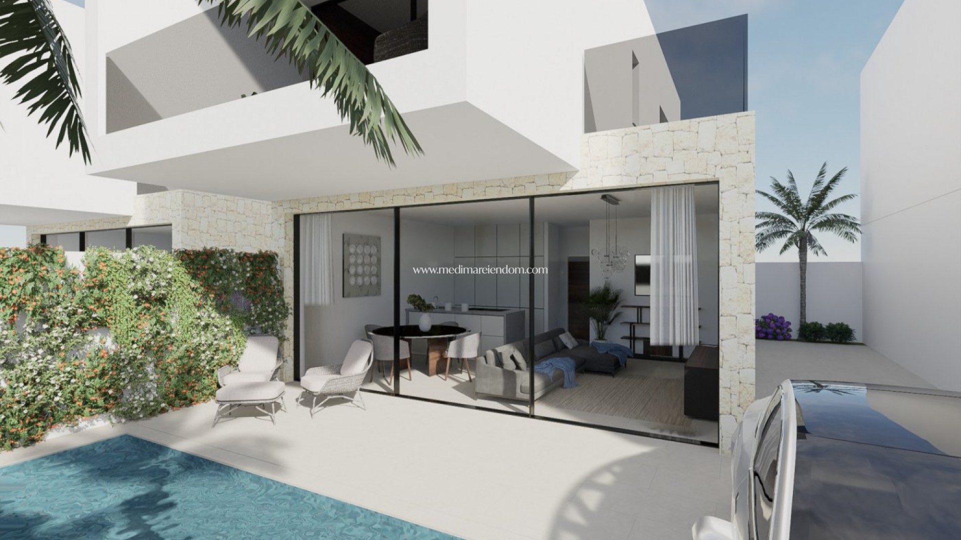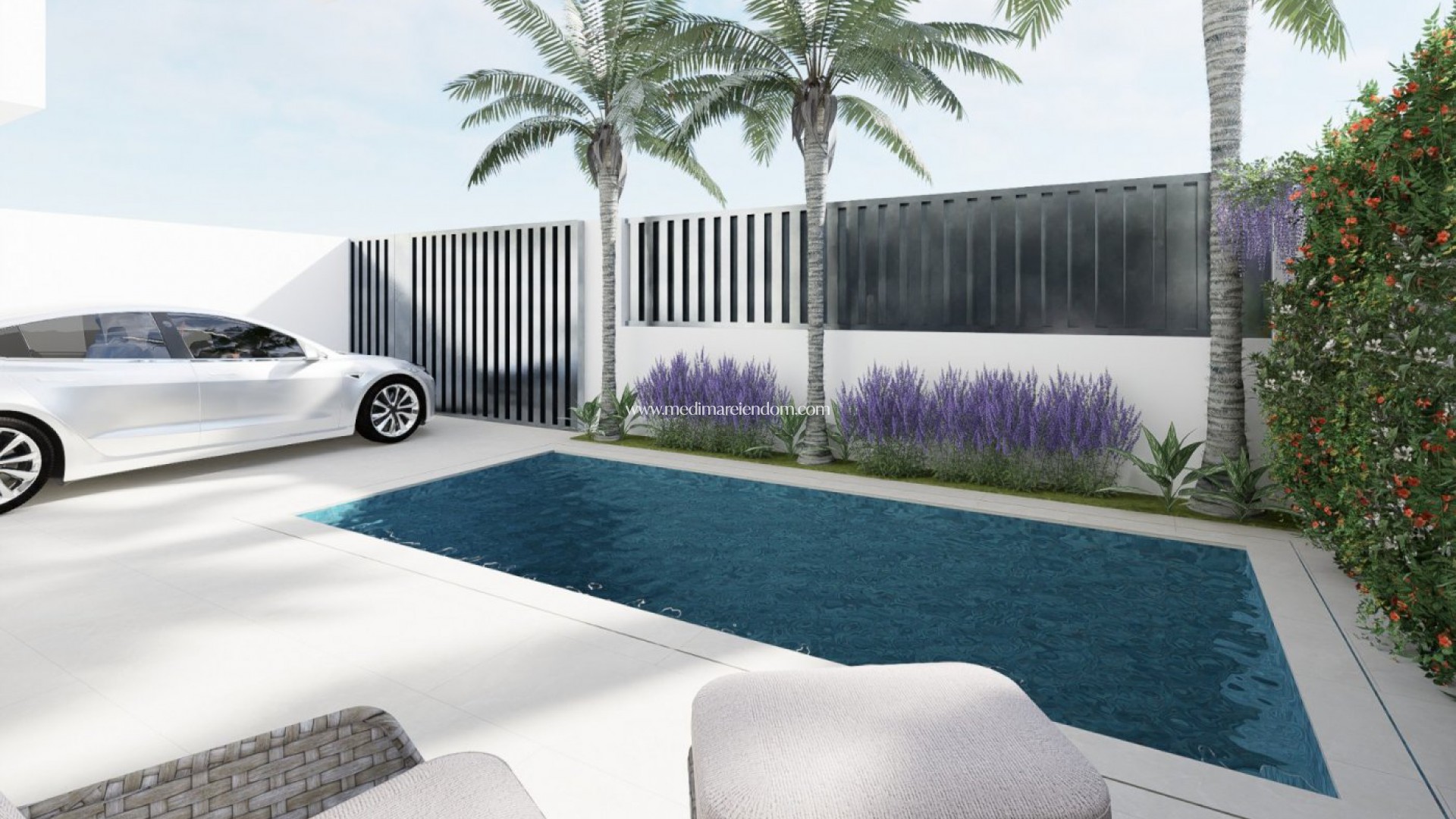 NIEUWBOUW VILLA'S IN SAN PEDRO DEL PINATAR Nieuwbouw 2 villa's in San Pedro del Pinatar. Nieuwbouw moderne villa's heeft 3 slaapkamers, 3 badkamers, open keuken met de woonkamer, inbouwkasten, een eigen tuin met het zwembad en off road parkeerplaats, prive solarium. Grote ramen in de woonkamer met directe toegang tot het zwembad. Villa's goed gelegen ten opzichte van scholen, winkels, sportcentra en openbaar vervoer San Pedro del Pinatar's bevoorrechte locatie aan de Mar Menor en de Middellandse Zee kust trekt diegenen aan met een interesse in zeilen en watersporten, het aanbieden van jachthaven ligplaatsen en zeilclubs, terwijl de stranden en natuurlijke modderbaden diegenen aantrekken die op zoek zijn naar veilige zon, zee en zand. San Pedro del Pinatar heeft een gevestigde gemeenschap en biedt een uitstekend scala aan activiteiten, waaronder een overdekt zwembad en sportfaciliteiten, evenals een jaarrond programma van sociale activiteiten door het aangename winterweer. De voordelen van de modderbaden, typisch voor de streek, of het kalme water van de Mar Menor, hebben de groei van Lo Pagán bevorderd, dat momenteel over allerlei voorzieningen beschikt. Bovendien heeft het een uitstekende ligging, op slechts 5 minuten van het commerciële centrum Dos Mares. De luchthaven van Murcia/Corvera ligt op 30 minuten afstand en die van Alicante op een uur rijden.