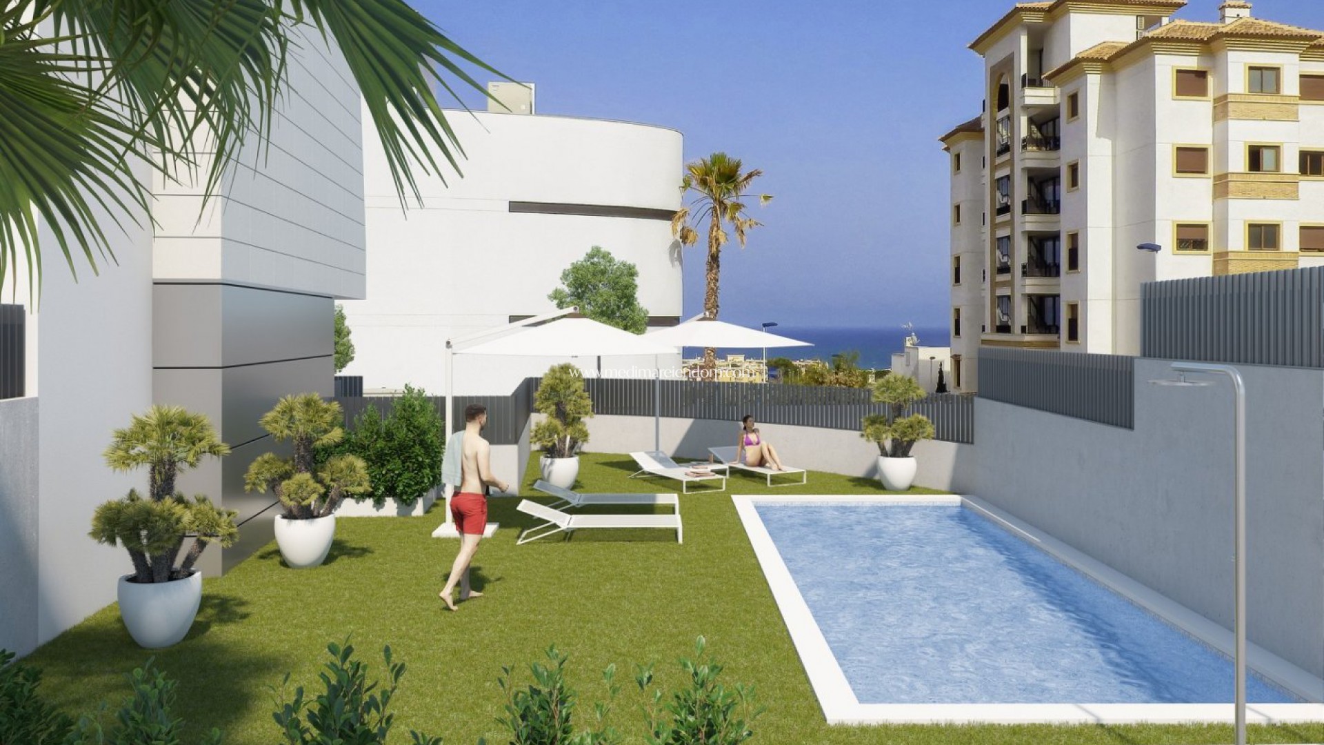 NIEUWBOUW RESIDENTIEEL COMPLEX MET ZEEZICHT IN GUARDAMAR DEL SEGURA Nieuwbouw residentieel complex bestaat uit 3 blokken van flats en penthouses, elk met 9 eenheden van 3 of 4 slaapkamers met gemeenschappelijk zwembad en uitzicht op zee in Guardamar del Segura. De gebouwen zijn ontworpen om een prachtig uitzicht op de Middellandse Zee te bieden en optimaal gebruik te maken van het klimaat en de natuurlijke lichtinval. Complex met een gemeenschappelijk zwembad en groene zones, evenals een fitnessruimte om een unieke ervaring voor u en uw gezin te garanderen. Optionele parkeerplaats en berging zijn beschikbaar tegen een meerprijs. Elke woning beschikt over 3 of 4 slaapkamers en 2 of 3 badkamers, open concept woonruimtes met geïntegreerde keukens, evenals ruime terrassen. De woningen op de begane grond hebben optioneel een privé zwembad, en de penthouses hebben grote ramen met het beste uitzicht op de kust, grote terrassen en solarium waar u kunt beschikken over een privé zwembad, keuken of jacuzzi. Complex gelegen op slechts 5 minuten van de stranden van Guardamar del Segura, in een woonwijk omgeven door parken en natuur. Alle diensten en voorzieningen van het stadscentrum liggen op slechts een steenworp afstand van uw nieuwe woning. Guardamar del Segura is een stad gelegen aan de Costa Blanca Zuid. Met zijn 11 kilometer natuurlijke strand en zijn grote dennenbos. Guardamar is een rustige stad om te wonen, het heeft alle diensten het hele jaar door, zoals restaurants, bars, winkels, banken, plaatsen voor vrijetijdsbesteding, enz. Elke woensdag wordt er in de centrale straten van de stad een markt georganiseerd waar veel mensen naartoe gaan om producten te kopen zoals levensmiddelen, kleding, meubels, dieren, enz. Het is een grote aanspraak en de inwoners van de omliggende stad komen elke woensdag naar Guardamar om de markt te bezoeken. Guardamar del Segura heeft een grote haven met activiteiten het hele jaar door, het heeft een groot sportcentrum met paddle tennis, tennis, voetbal en een groot verwarmd zwembad dat het hele jaar door werkt. Het heeft ook een bibliotheek waar er gratis wifi en computers zijn. Guardamar del Segura ligt op slechts 20 km afstand van de luchthaven Alicante - Elche (El Altet), waar dagelijks vele vluchten zijn met verbindingen naar de belangrijkste Europese steden, vanwege de vraag naar toeristen aan de Costa Blanca.