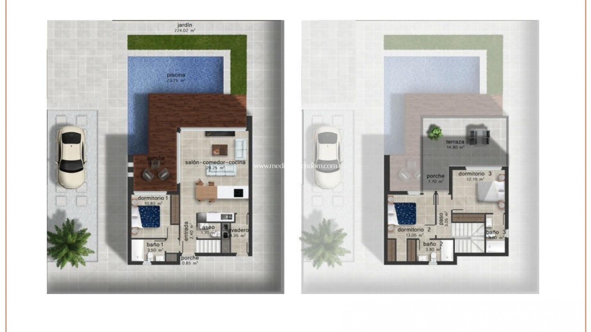 NIEUWBOUW VILLA'S IN SAN PEDRO DEL PINATAR Nieuwbouw prachtige twee verdiepingen tellende villa zijn zorgvuldig ontworpen om de perfecte individuele prive moderne leefruimte te bieden, met dubbele volledig glazen schuifdeuren die direct uitkomen op een groot terras met prive zwembad omheinde tuinen met off-road parking. Perfect om te wonen ... Deze kenmerkende villa biedt een oversized royaal gevoel met 3 slaapkamers, 4 badkamers, berging bijkeuken, open lounge en eetkamer, overdekt terras, open terrassen van de grote slaapkamers op de eerste verdieping, prive zwembad aan de voorzijde met off-road parking en tuin. "De hele dag zon" met terrassen op de eerste verdieping om de hele dag van de zon te genieten ... Gelegen in een centrale, gevestigde woonwijk op slechts 10 minuten lopen van de stranden van San Pedro del Pinatar. De bevoorrechte ligging van San Pedro del Pinatar aan de Mar Menor en de Middellandse Zeekust trekt mensen aan die geïnteresseerd zijn in zeilen en watersporten, met ligplaatsen in de jachthaven en zeilclubs, terwijl de stranden en natuurlijke modderbaden mensen aantrekken die op zoek zijn naar veilige zon, zee en strand. San Pedro del Pinatar heeft een gevestigde gemeenschap en biedt een uitstekend aanbod aan activiteiten, waaronder een overdekt zwembad en sportfaciliteiten, evenals het hele jaar door een programma van sociale activiteiten door het aangename winterweer. De voordelen van de modderbaden, typisch voor de regio, of het kalme water van de Mar Menor hebben de groei van Lo Pagán bevorderd, dat momenteel over allerlei voorzieningen beschikt. Bovendien heeft het een uitstekende ligging, op slechts 5 minuten van het commerciële centrum Dos Mares. Het vliegveld van Murcia/Corvera ligt op 30 minuten rijden en dat van Alicante op een uur rijden.