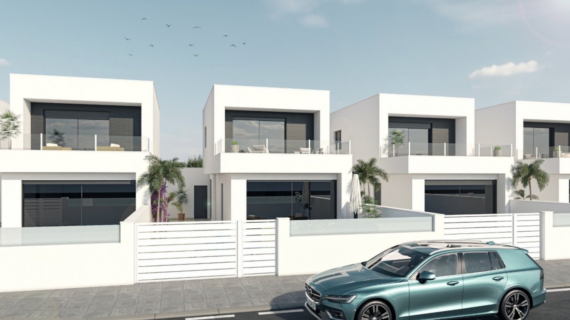 NIEUWBOUW WONING VAN VILLA'S IN SAN PEDRO DEL PINATAR Deze prachtige ruime villa's zijn zorgvuldig ontworpen om het perfecte individuele huis te bieden met ruime terrassen op de begane grond en grootformaat glazen schuiframen om toegang te krijgen. Op de begane grond hebben we een open salon met keuken, berging en 1 slaapkamer met 1 badkamer. De eerste verdieping hebben we 2 grote slaapkamers met een groot terras vanuit de hoofdslaapkamer en de tweede slaapkamer en 1 badkamer. Prive-tuin met off-road parking. Opties voor een solarium op het dak en een privézwembad tegen een meerprijs. Villa's gelegen op slechts een paar minuten van de hoofdstraat van San Pedro del Pinatar, en dicht bij Marina de las Salinas, de Marina de las Salinas jachthaven, stranden, restaurants, tapasbars en sportfaciliteiten. De bevoorrechte locatie van San Pedro del Pinatar aan de Mar Menor en de Middellandse Zeekust trekt diegenen aan die geïnteresseerd zijn in zeilen en watersport, en biedt aanlegplaatsen in jachthavens en zeilclubs, terwijl de stranden en natuurlijke modderbaden diegenen aantrekken die op zoek zijn naar veilige zon, zee en zand. San Pedro del Pinatar heeft een gevestigde gemeenschap en biedt een uitstekend aanbod aan activiteiten, waaronder een overdekt zwembad en sportfaciliteiten, evenals het hele jaar door een programma met sociale activiteiten bij het aangename winterweer. De voordelen van de modderbaden, typisch voor de regio, of de kalme wateren van de Mar Menor, hebben de groei van Lo Pagán bevorderd, dat momenteel allerlei voorzieningen heeft. Bovendien heeft het een uitstekende locatie, op slechts 5 minuten van het Comercial Centre Dos Mares.
