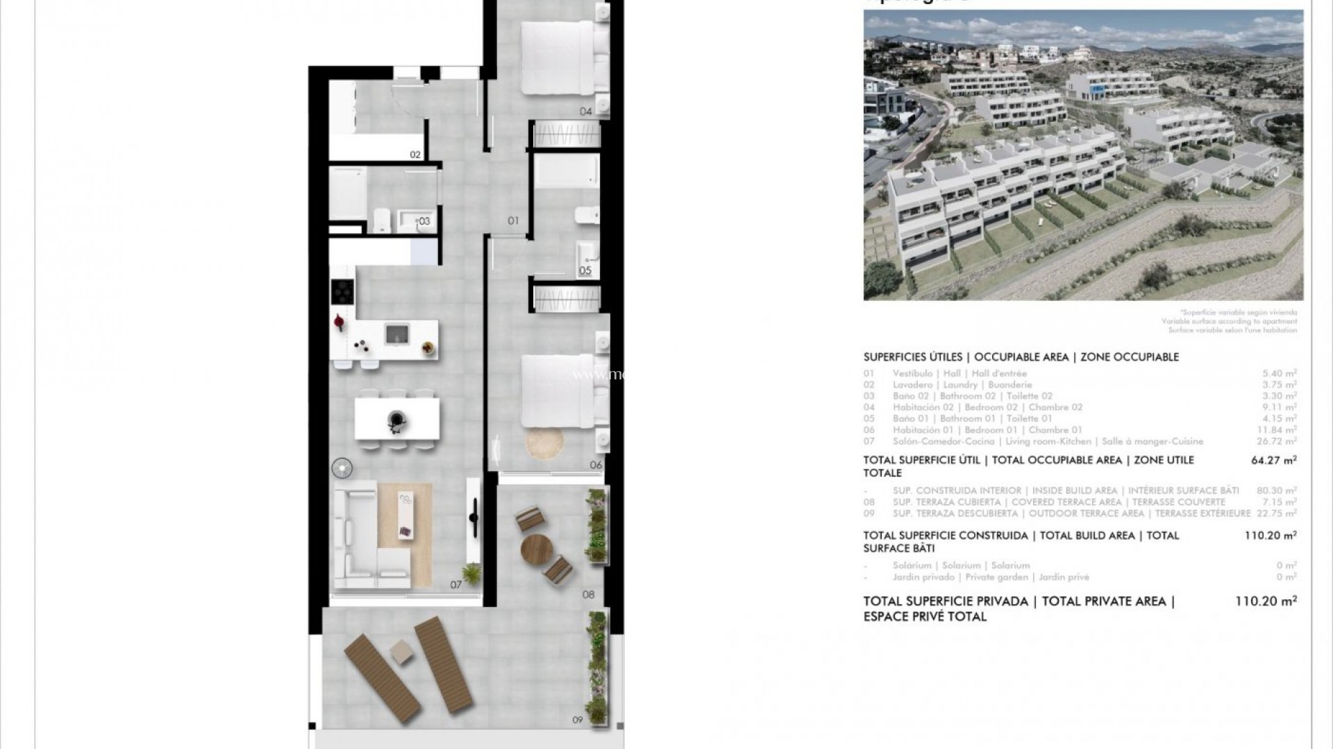 NIEUWBOUWWONING MET SPECTACULAIR UITZICHT OP ZEE IN VILLAJOYOSA LEEF AAN ZEE Nieuwbouw unieke woonwijk aan de Costa Blanca vanwege het onovertroffen panoramische uitzicht en de ongelooflijke gemeenschappelijke ruimtes. U kunt het hele jaar door een ontspannend bad nemen terwijl u de Middellandse Zee aanschouwt, aangezien het zwembad en de jacuzzi's verwarmd zijn. Sportliefhebbers zullen genieten van een complete fitnessruimte en een benijdenswaardige omgeving om watersporten te beoefenen. De kleintjes zullen zich prima vermaken in hun speeltuinen in en uit het water. PANORAMISCH UITZICHT De gemeenschappelijke ruimtes en de huizen hebben een prachtig uitzicht op de zee. Afhankelijk van de oriëntatie en hoogte van het huis kunt u genieten van uitzicht op de gemeenschappelijke ruimtes, het zwembad en de verschillende stranden en baaien. RUIME HUIZEN 3 slaapkamers bungalows met groot terras en tuin. Uitstekende kwaliteiten waaronder o.a. warme/koude airconditioning via kanalen en vloerverwarming in de badkamers, waardoor u uw woning kunt personaliseren tussen verschillende afwerkingsmogelijkheden. Alle woningen zijn inclusief parkeerplaats. NAAST HET STRAND La Cala Bolnou ligt tegenover het wooncomplex, op slechts 130 meter afstand. Aan beide kanten vinden we nog een aantal stranden, Playa Paraíso (met meer dan 1.060 meter lang en verschillende strandbars), Playa el Asparalló (naast moeilijk toegankelijke kliffen en kristalhelder water) en Cala Higuera of "La Caleta". MET ALLE DIENSTEN De residentie ligt in Villajoyosa en heeft het hele jaar door alle noodzakelijke diensten, naast zijn charme, gastronomie en populaire festivals. De stad Alicante ligt op 15 minuten afstand met de luchthaven, hogesnelheidstrein, haven en de meest complete gezondheids-, vrijetijds- en winkeldiensten die een grote stad biedt. Op 8 minuten afstand ligt de stad Benidorm met winkelcentra en alle toeristische vrijetijdsdiensten.