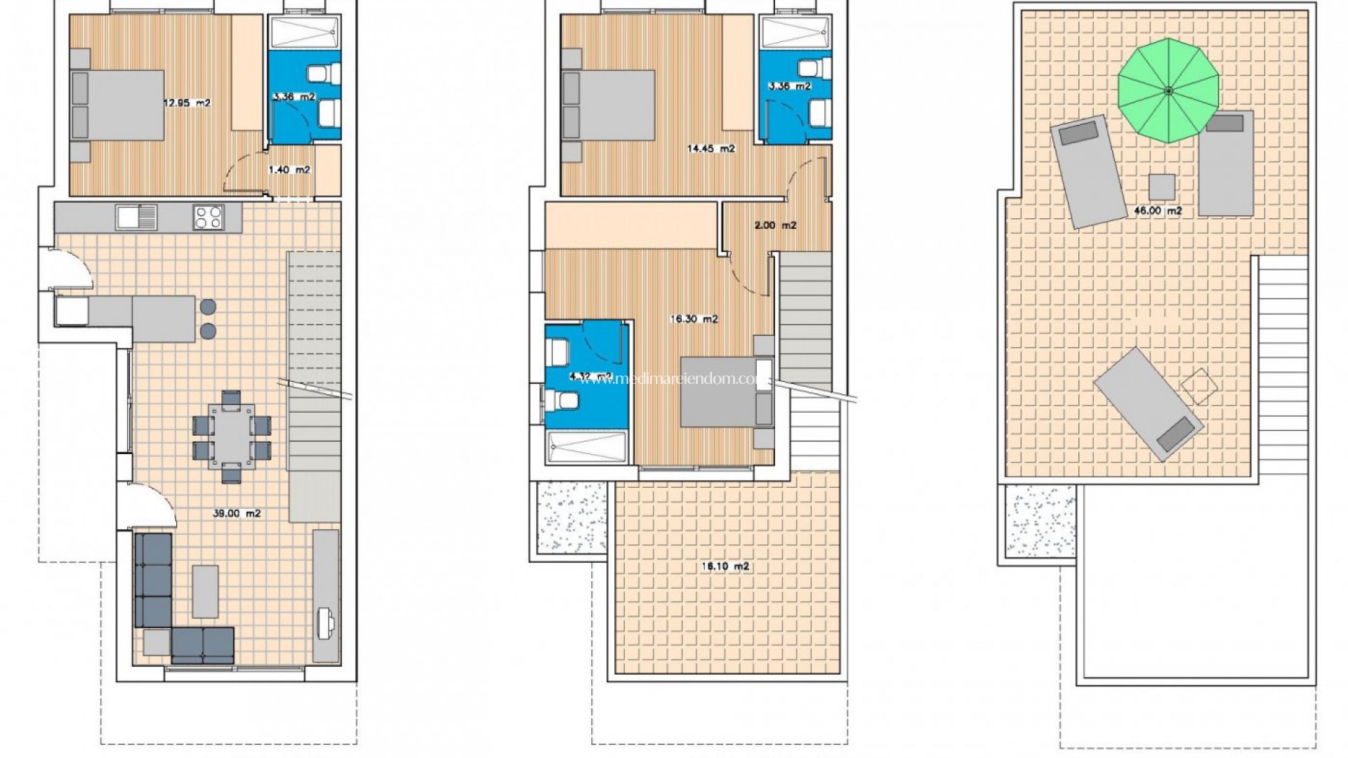 NIEUWBOUW HALFVRIJSTAAND HUIS IN BENIJÓFAR MET PRIVÉ ZWEMBAD Half vrijstaande woning met 3 slaapkamers, 3 badkamers, open keuken naar de woon-eetkamer, perceel van 192 m2 met privé zwembad en een terras van 16 m2 op de eerste verdieping met vrij uitzicht. Mogelijkheid om tegen een meerprijs een privésolarium van 46 m2 in te schakelen. Benijófar ligt op de rechteroever van de Segura-rivier en is goed verbonden met Orihuela en Guardamar del Segura via de weg die u naar de prachtige fijne zandstranden brengt, op minder dan 8 km afstand. Er zijn diverse golfbanen in de omgeving (binnen 4 km). Het is ook verbonden door een regionale weg met Torrevieja. 42 km. van Alicante en 85 km. van Benidorm.
