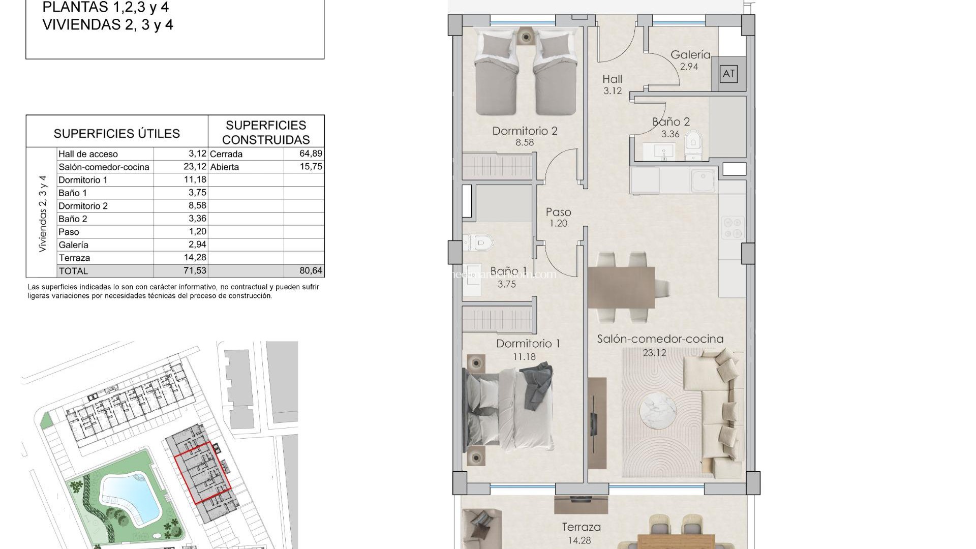 NIEUWBOUW WOONCOMPLEX IN SANTA POLA Modern omheind wooncomplex bestaande uit 3 blokken apartmwnts met grote aangelegde gemeenschappelijke ruimtes, waaronder een zwembad met waterbedden, kinderspeelplaats, pergola en fietsenstalling. De residentiële heeft 3 en 2 slaapkamer appartementen, beide types zijn voorzien van 2 badkamers, open keuken met woonkamer, inbouwkasten, terras, parkeerplaats. Ze hebben een gemeenschappelijke tuin, zwembad met strand-achtige ingang, uitgerust met douches en een grote houten pergola. Het heeft aangelegde gebieden met palmbomen en vegetatie, die allemaal verlicht zijn. In het centrale deel van het zwembad bevindt zich een ondieper gedeelte waar zich de waterbedden bevinden. De gemeente Santa Pola ligt aan de populaire Costa Blanca aan de Middellandse Zee, ten zuiden van Alicante en in de regio Bajo Vinalopó. De stad heeft een benijdenswaardige geografische ligging, omringd door natuurlijke landschappen en met een speciaal microklimaat dat het hele jaar door een mild klimaat biedt. Het stadscentrum wordt begrensd door het kasteelfort en de haven in het oosten en westen, en wordt begrensd door het natuurpark Santa Pola Salinas en de Sierra en Cabo de Santa Pola, een oud rif dat vandaag de dag wordt gekenmerkt door zijn riffen met loofbomen. Santa Pola ligt op 21 km. van Alicante, de provinciehoofdstad met een uitstekende infrastructuur en op 15 km. afstand van de internationale luchthaven "Elche-Alicante".