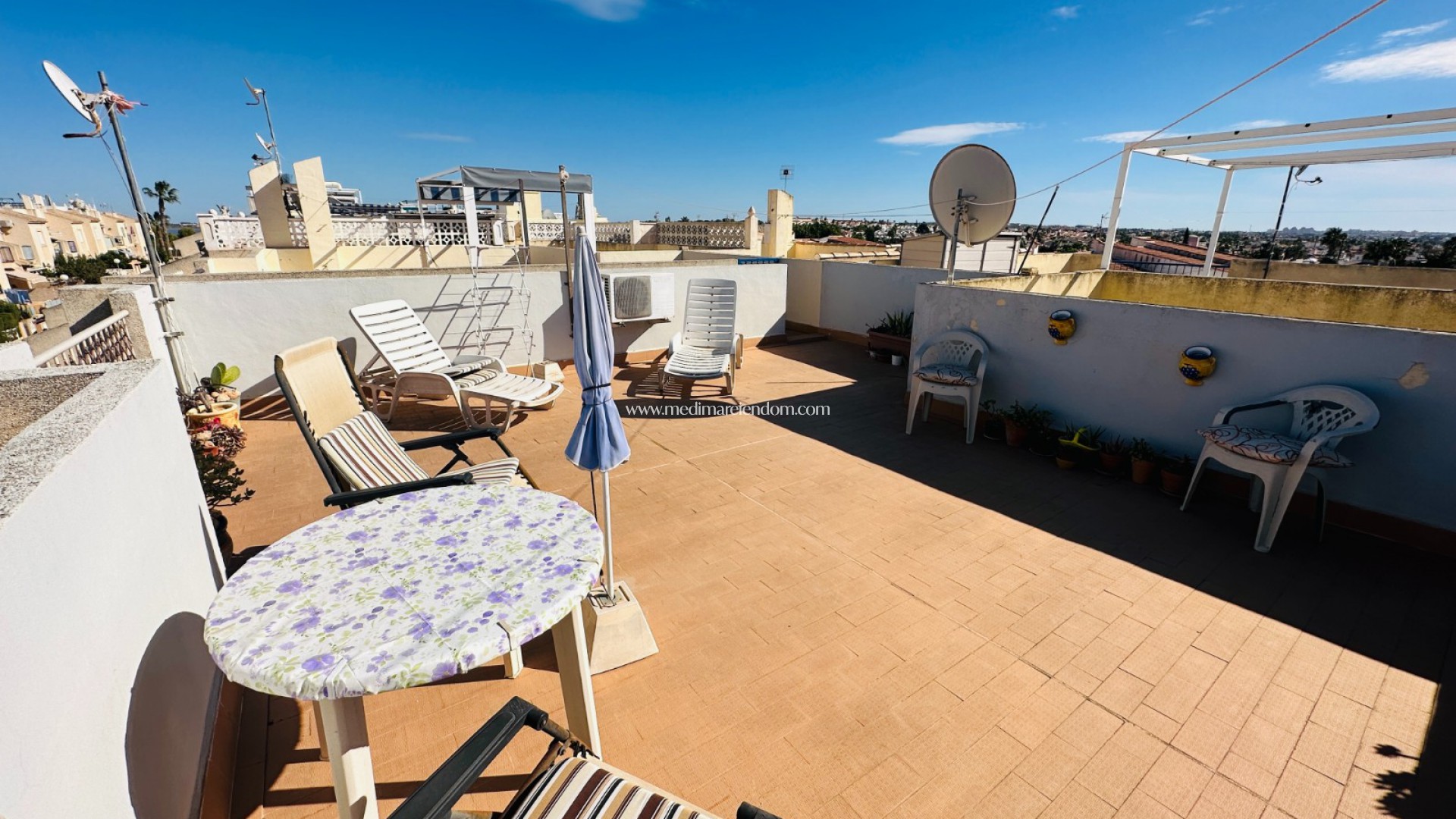 Penthouse met 2 slaapkamers, 1 badkamer, woonkamer met open keuken, terras en groot dakterras 52m2 gelegen in San Luis in Torrevieja!