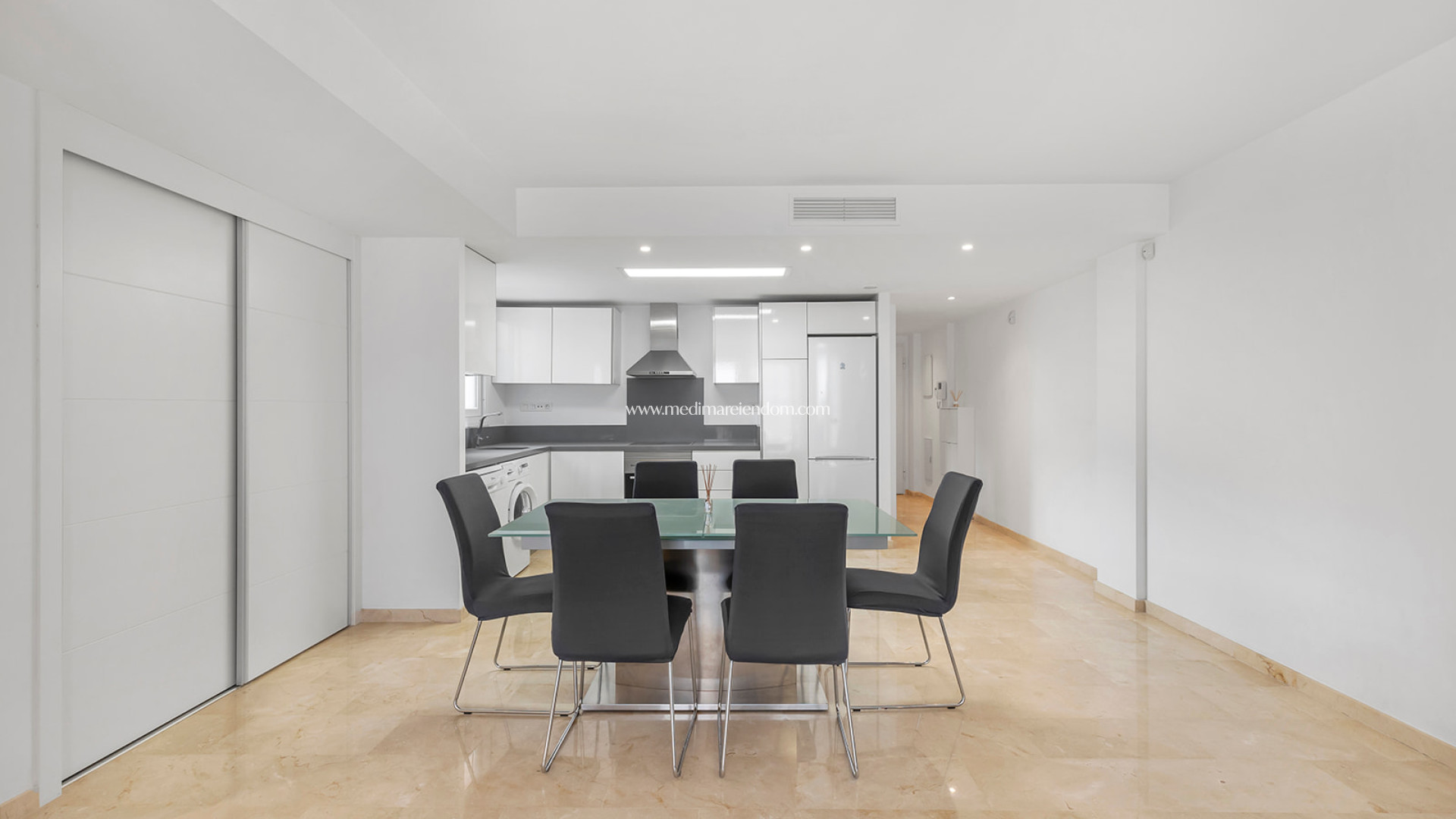 Dit elegante appartement op de derde verdieping bevindt zich in La Recoleta, een prestigieus wooncomplex in Punta Prima, Torrevieja. Het pand heeft een bebouwde oppervlakte van 124 m², verdeeld over drie slaapkamers en twee badkamers, en biedt een ruime en comfortabele woonomgeving. Het appartement beschikt over een lichte woon-eetkamer en een volledig uitgeruste open keuken. Vanuit de woonkamer is er toegang tot een terras van 15 m² op het westen, ideaal om te genieten van spectaculaire zonsondergangen en een warme, gezellige sfeer. Het appartement wordt volledig gemeubileerd verkocht en is klaar om in te trekken. Het wooncomplex La Recoleta biedt zijn bewoners een verscheidenheid aan voorzieningen, waaronder gemeenschappelijke zwembaden, grote tuinen en 24-uursbeveiliging in een gated community, wat zorgt voor gemoedsrust en welzijn. Daarnaast beschikt het pand over een ondergrondse parkeerplaats en een berging, wat gemak en extra opslagruimte biedt. Het appartement ligt in Punta Prima, op loopafstand van de lokale stranden en de boulevard. Het gebied is goed bereikbaar en biedt een breed scala aan voorzieningen, zoals restaurants, winkels en winkelcentra. Hierdoor is het een ideale optie voor zowel permanente bewoning als vakantie-investeringen.