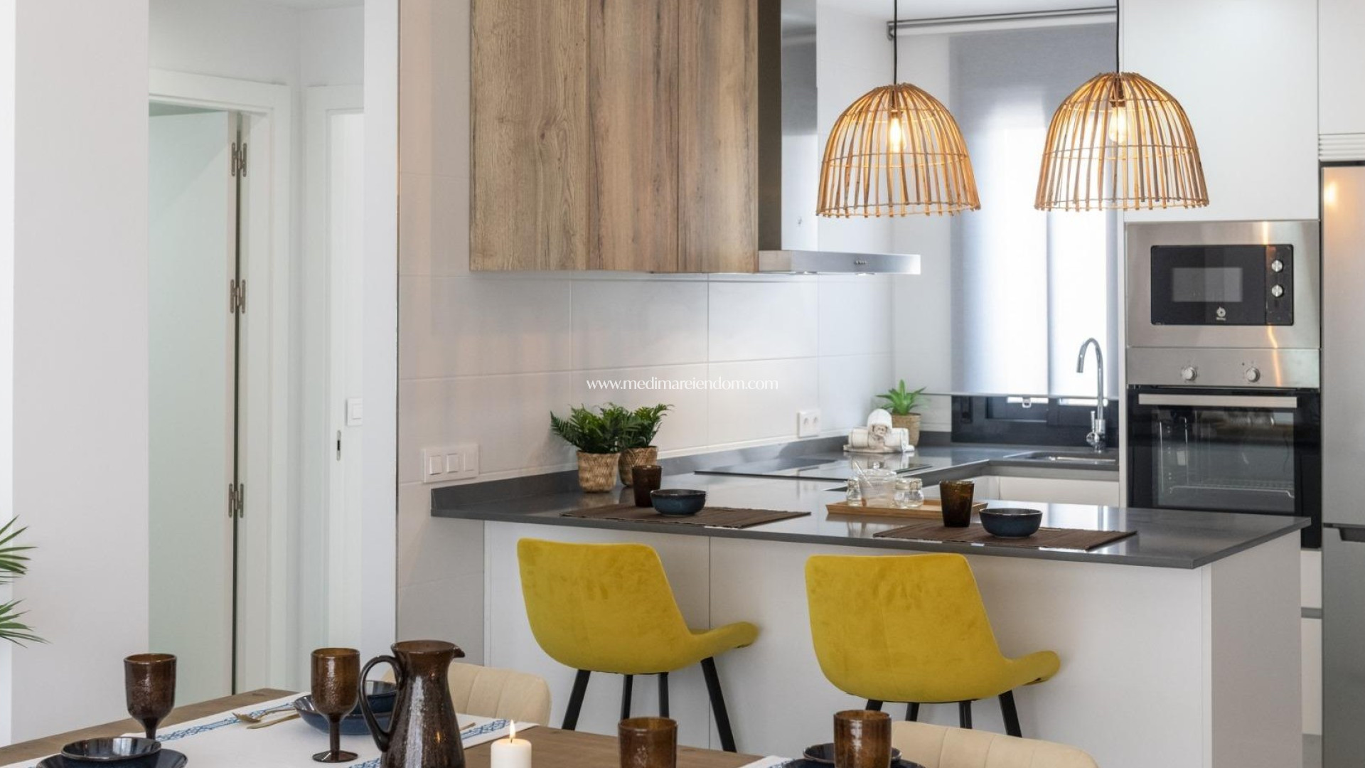 NIEUWBOUW RESIDENTIEEL COMPLEX IN ORIHUELA COSTA Omheinde urbanisatie van 40 appartementen met 2 en 3 slaapkamers, begane grond met eigen tuin, bovenste verdieping met prive solarium, allemaal met directe toegang tot het grote gemeenschappelijke zwembad en tuinen voor u en uw gezin om van te genieten. Alle appartementen worden geleverd met parkeerplaats en berging. Modern design en topkwaliteit. Complex gelegen naast het strand van Punta Prima zodat u het hele jaar door kunt genieten van de Spaanse zon aan de Costa Blanca. Slechts 5 minuten van de Villa Martín Golfbaan en het winkelcentrum La Zenia Boulevard. Complex gelegen op 40 minuten van de luchthaven van Alicante en 1 uur van de luchthaven van Murcia - Corvera.