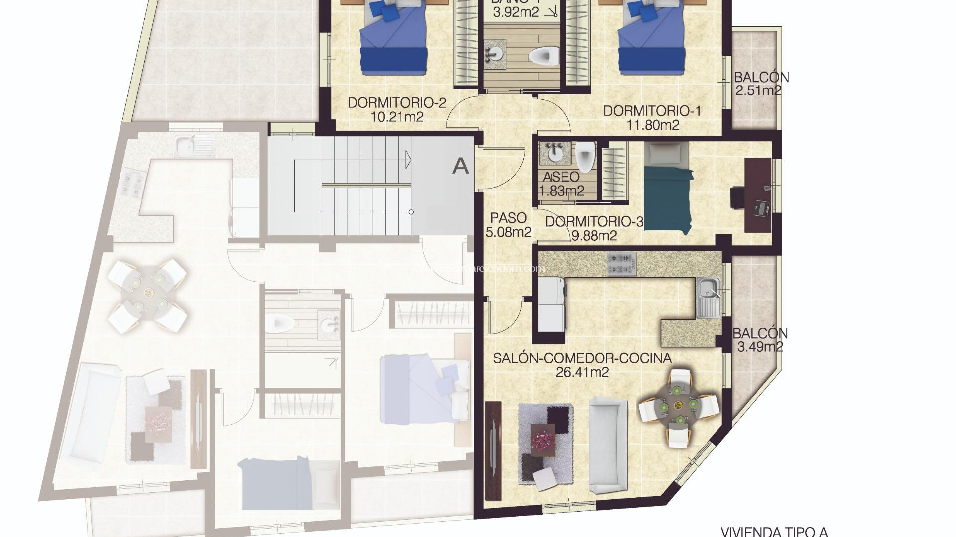 Nieuwbouwappartementen in Jacarilla, Alicante Ontdek dit exclusieve nieuwbouwcomplex in Jacarilla met woningen met 2 of 3 slaapkamers en 1 of 2 badkamers. Alle woningen zijn voorzien van vloerverwarming in de badkamer, een ingerichte keuken die uitkomt op de woonkamer, inbouwkasten, een gepantserde voordeur en pre-installatie voor airconditioning. Er is een gemeenschappelijk dakterras. Beproevde locatie in Jacarilla - Een rustig dorp met uitstekende verbindingen Jacarilla, gelegen in het hart van de Vega Baja, Alicante, is een charmant traditioneel Spaans dorp dat bekend staat om zijn agrarische erfgoed, citrusplantages en schilderachtige landschappen. Ondanks de rustige omgeving biedt Jacarilla gemakkelijke toegang tot essentiële voorzieningen, waaronder supermarkten, restaurants, apotheken en nog veel meer. Het dorp heeft uitstekende wegverbindingen: Orihuela stad - 10 km. Guardamar del Segura en de stranden van de Middellandse Zee - 15 km. Torrevieja - 20 km. Luchthaven Alicante-Elche (ALC) - 50 km (40 minuten met de auto). Golfbanen (Vistabella Golf, La Finca Golf & La Marquesa Golf) - 10-15 km. Een ideale investering of een vakantiehuis in het hart van de Costa Blanca Of u nu op zoek bent naar een permanente woning, een vakantiehuis of een solide investering, deze gloednieuwe appartementen in Jacarilla bieden een uitstekende gelegenheid om te genieten van de mediterrane levensstijl op een rustige maar goed bereikbare locatie. Neem vandaag nog contact met ons op om een bezichtiging te plannen of meer informatie te ontvangen over deze fantastische promotie.