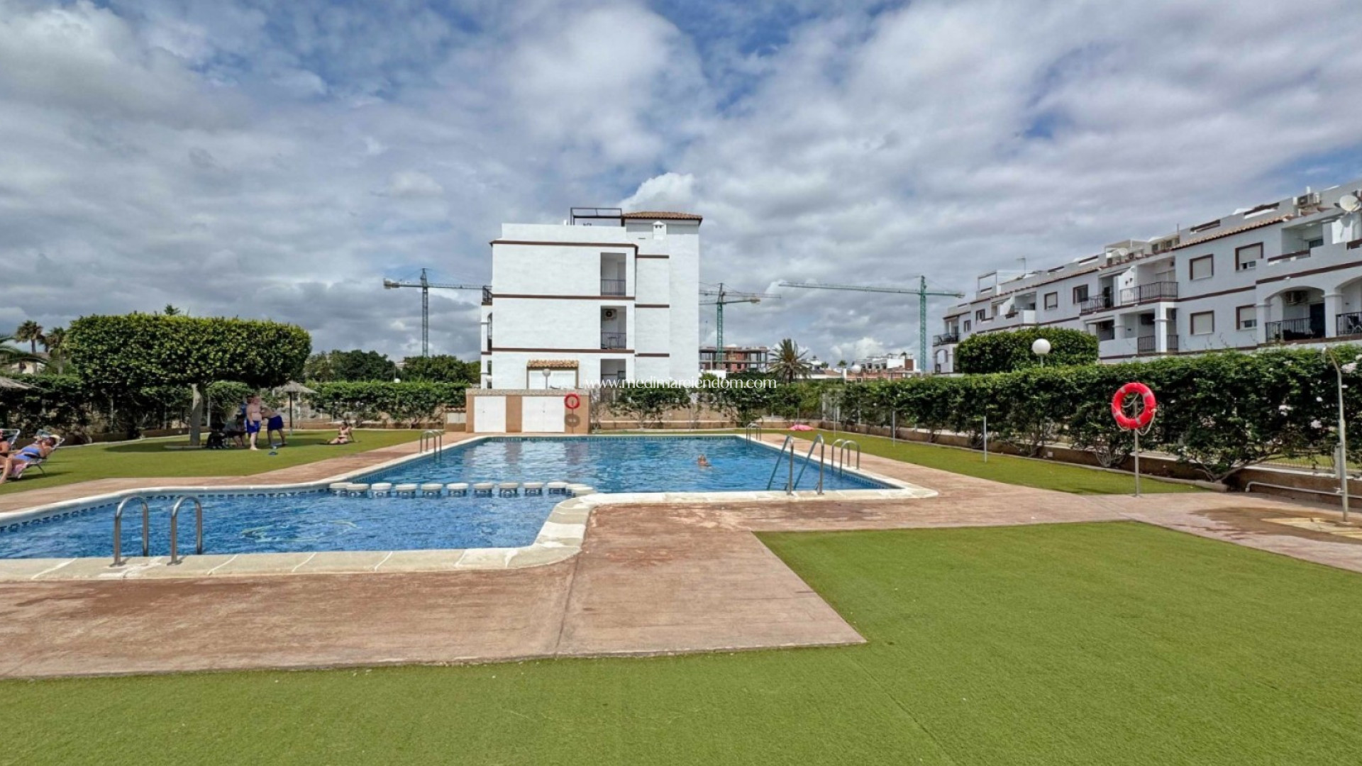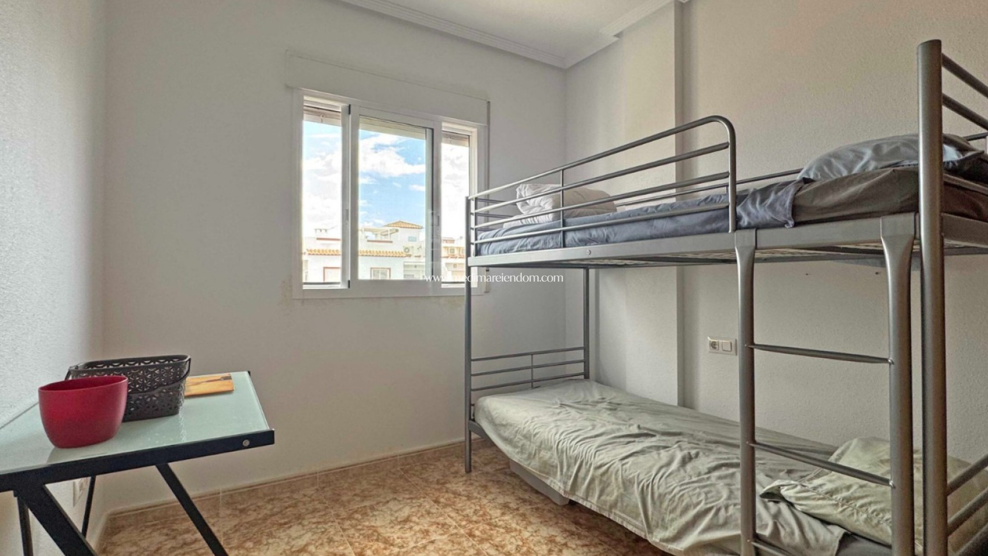 Deze goed onderhouden woning ligt op slechts 900 meter van de zee, in het gewilde Punta Prima (Orihuela Costa). Gelegen op de tweede verdieping van een complex uit 2008, biedt dit appartement een ideale combinatie van comfort, locatie en verhuurpotentieel. Het woonoppervlak van 97 m² omvat: 2 tweepersoons slaapkamers met inbouwkasten 2 badkamers, waarvan één en-suite Lichte woon- en eetkamer met toegang tot een privébalkon Volledig uitgeruste moderne keuken Privé dakterras (solarium) met prachtig zeezicht en zonnescherm Extra voorzieningen zijn: airconditioning, gedeeltelijk gemeubileerd, privé parkeerplaats, gemeenschappelijk zwembad. De woning verkeert in uitstekende staat en is geschikt voor mensen met beperkte mobiliteit (geen lift, maar aangepast extern toegangspad). Op loopafstand van winkels, restaurants, strand en het winkelcentrum Zenia Boulevard. Perfect als permanente woning, vakantieverblijf of investering.