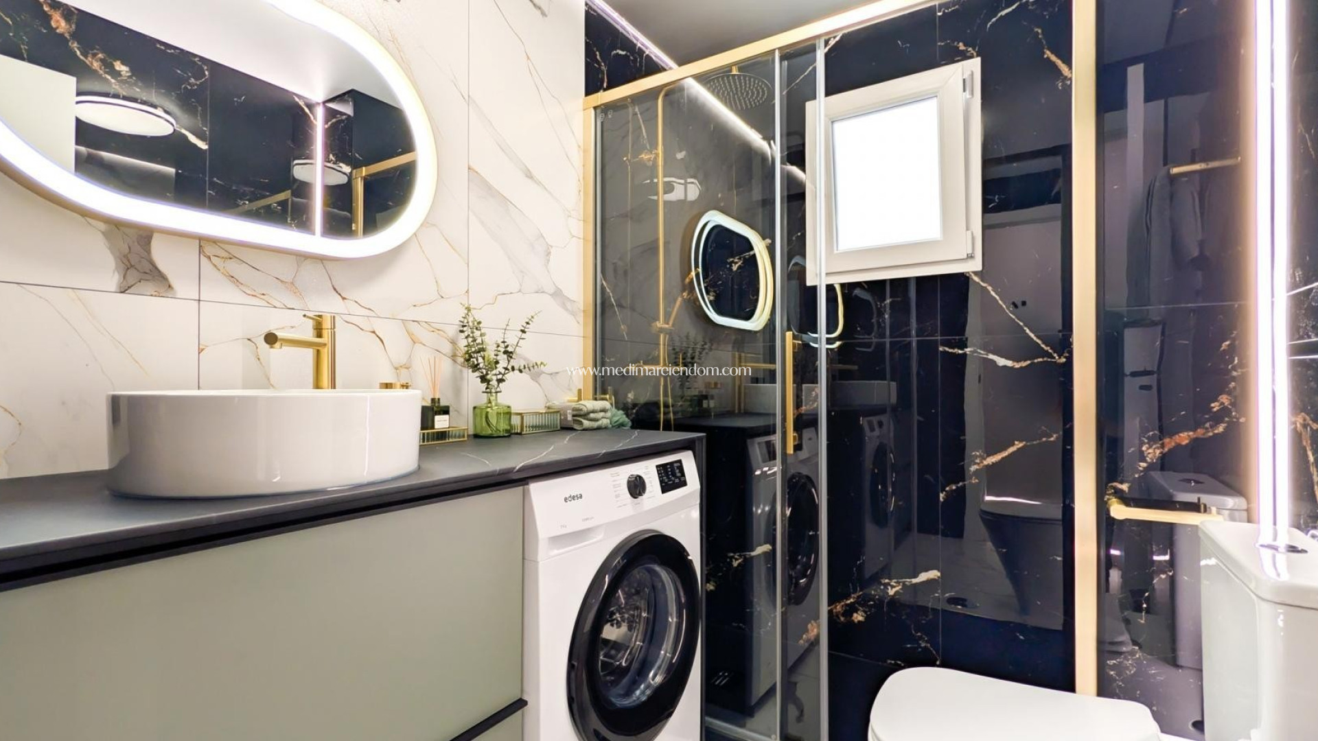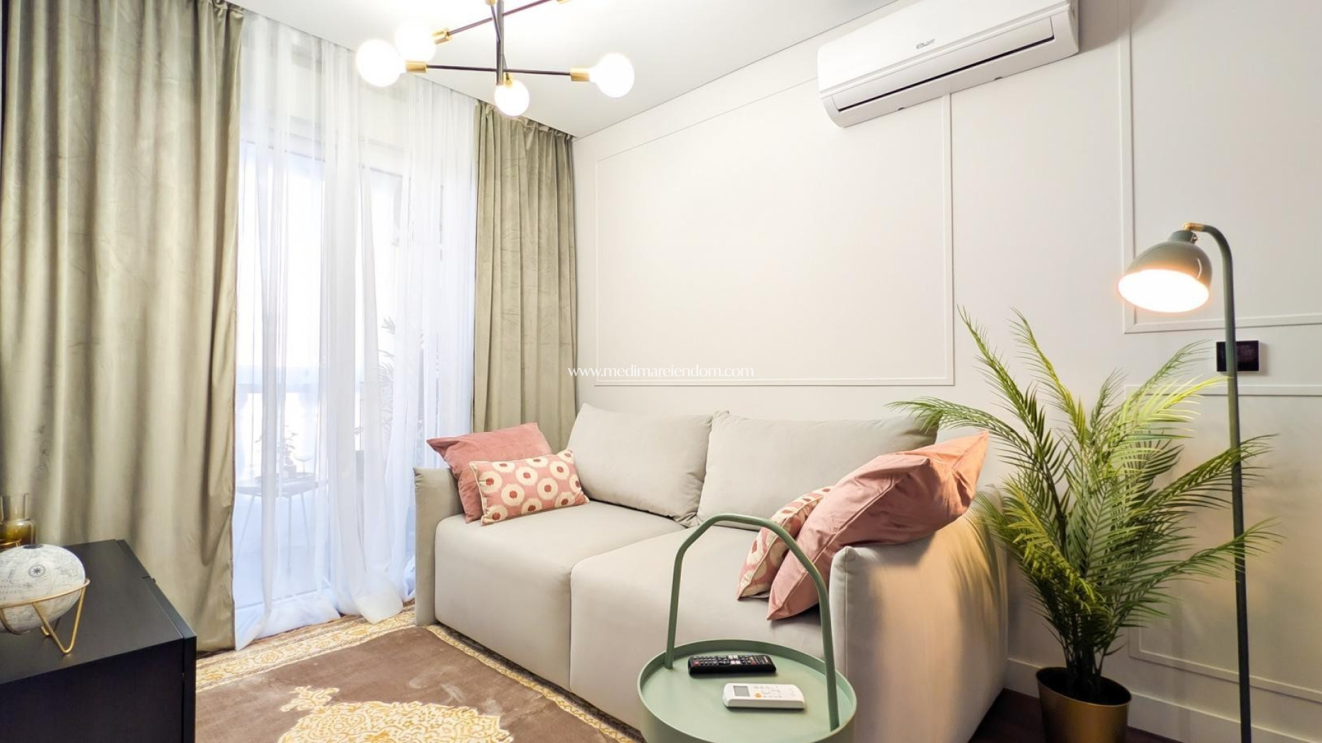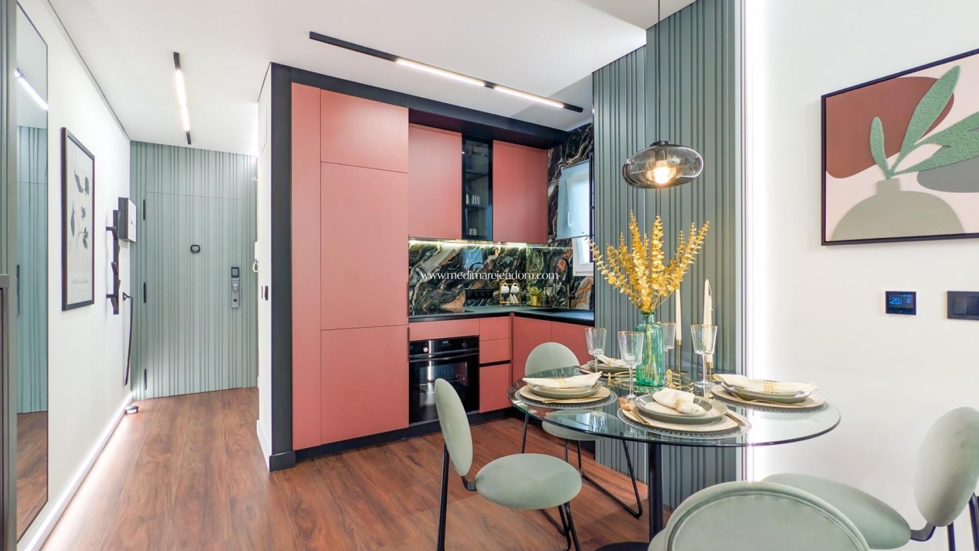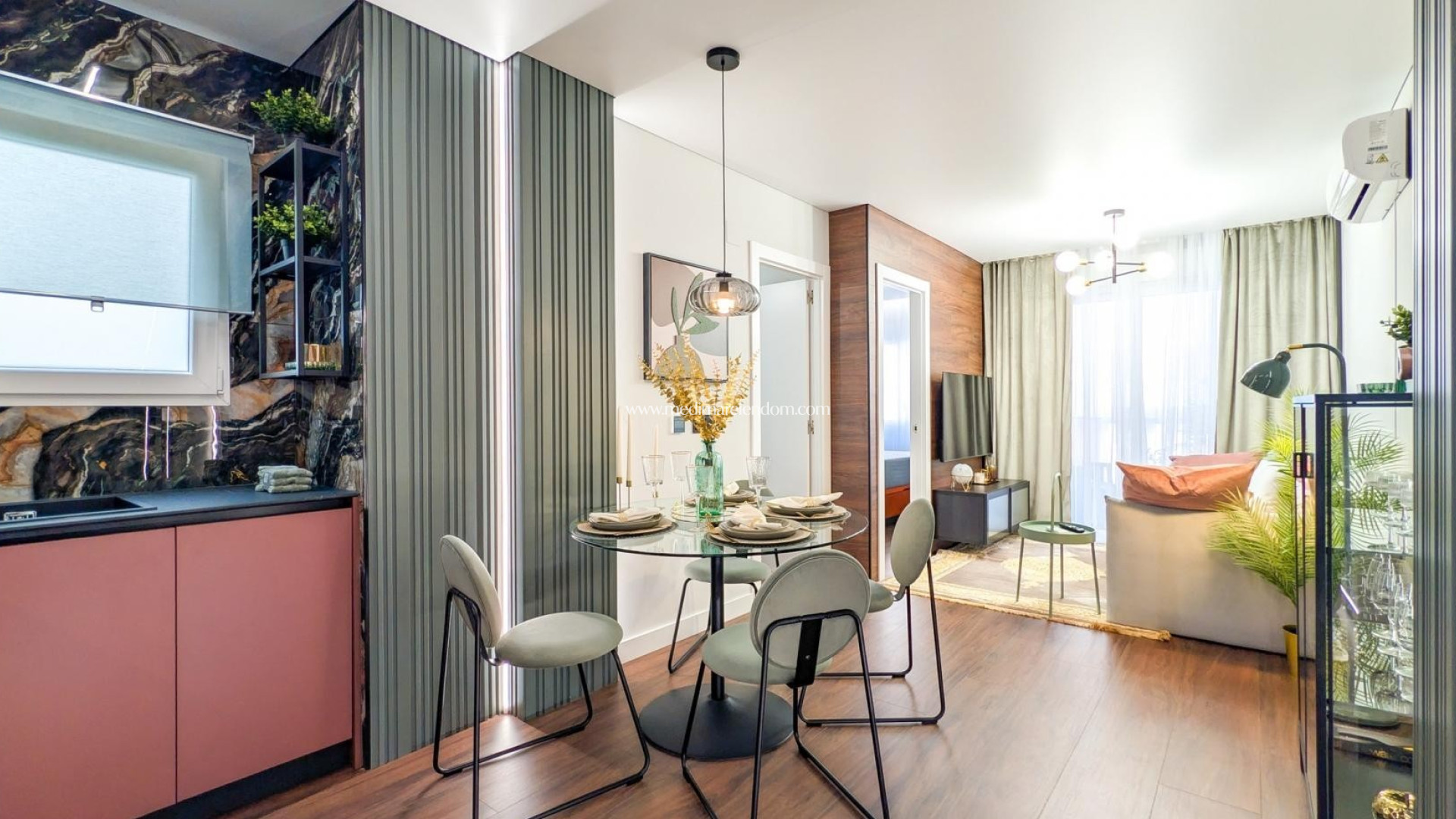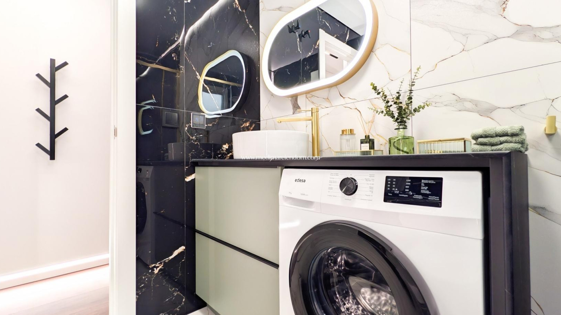 Dit volledig gerenoveerde appartement is nu te koop en ligt op slechts enkele stappen van het Parque de las Naciones in Torrevieja. Met een bebouwde oppervlakte van 56 m² biedt het modern comfort op een toplocatie. De woning beschikt over 2 slaapkamers, 1 badkamer en een privéterras. Na de volledige renovatie is het appartement nog niet bewoond. Alles is vernieuwd: ramen, leidingen, elektrische installatie, vloeren, muren en spanplafonds. De gehele woning is voorzien van vloerverwarming, airconditioning en een elektronisch deurslot. Het appartement wordt volledig gemeubileerd en uitgerust verkocht – instapklaar. Gelegen in een afgesloten wooncomplex met mooie binnentuinen, een kinder- en volwassenenbad, groenvoorziening en zitruimtes. In het zwembad is een badmeester aanwezig tijdens het seizoen. Het verkrijgen van een toeristenvergunning is mogelijk. Op loopafstand van supermarkten, restaurants, bars en het stadsplein van Torrevieja. Het strand ligt op slechts 800 meter afstand – perfect als vaste woonplek of als investering.