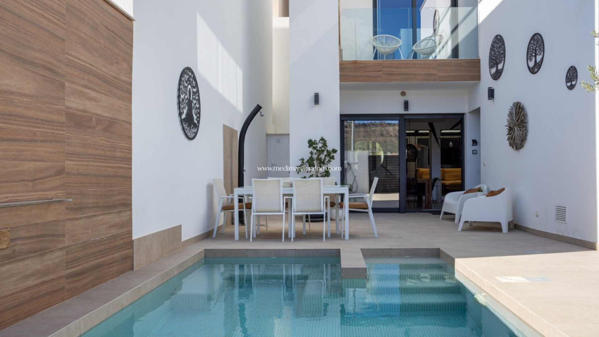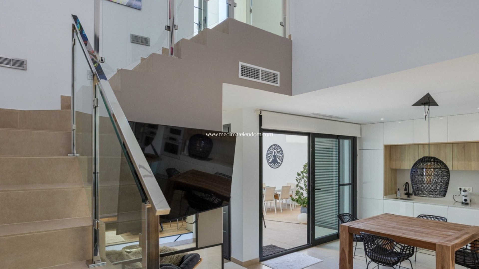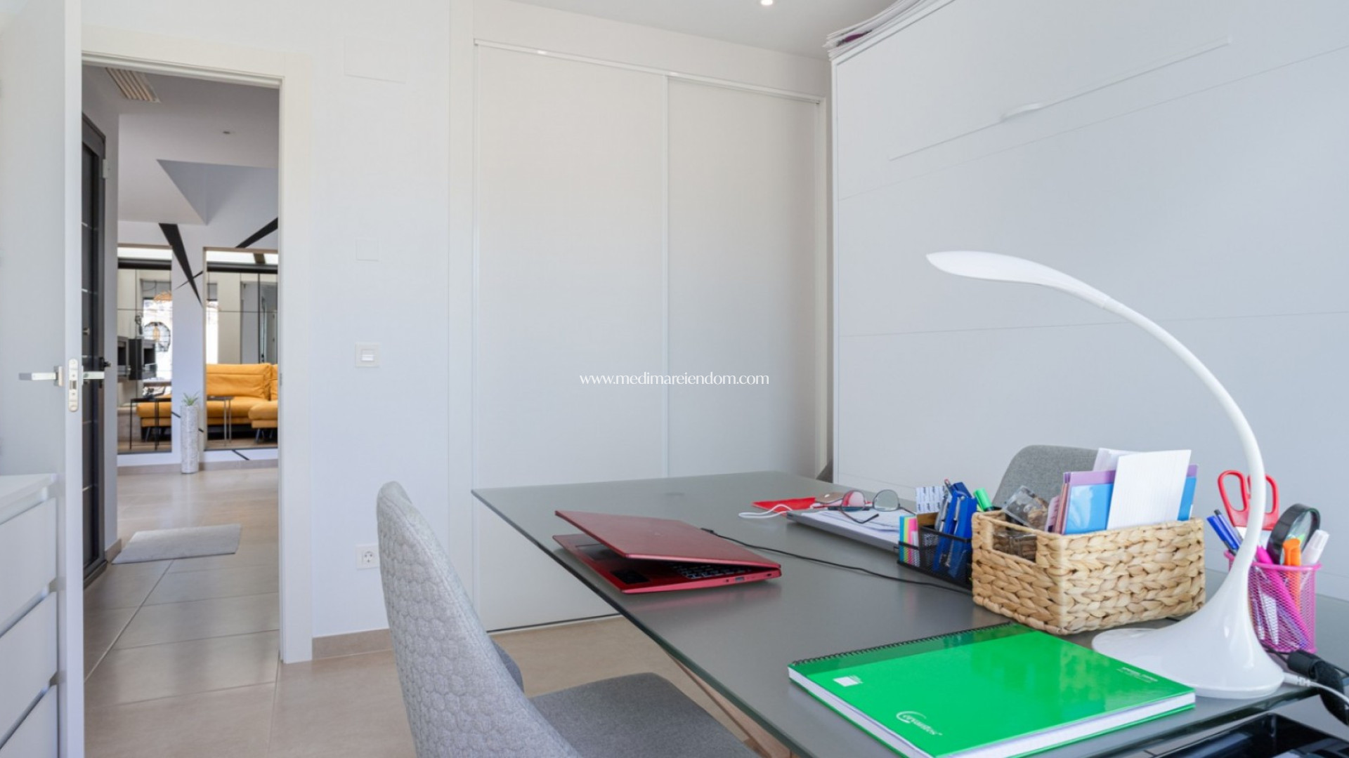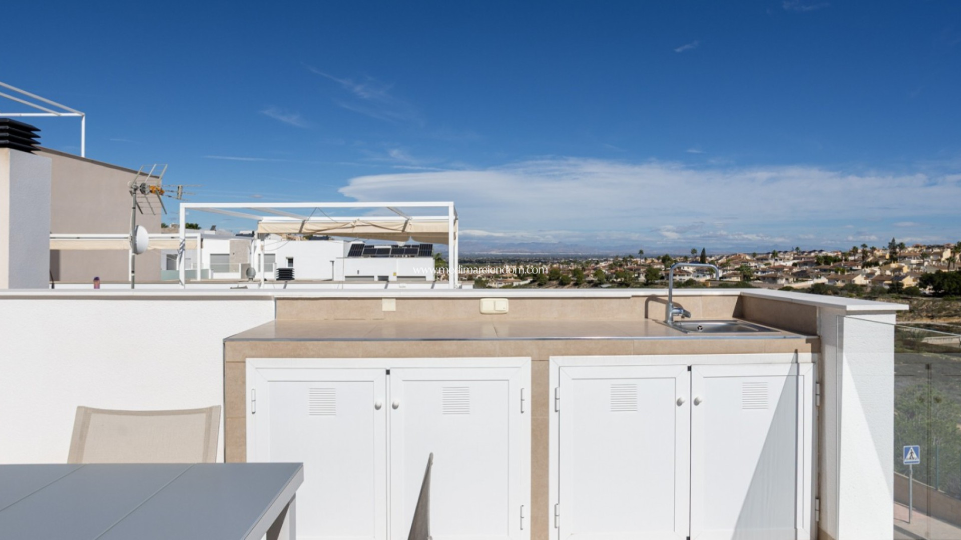 Deze woning uit 2018 ligt in een van de meest gewilde en snelgroeiende gebieden van de zuidelijke Costa Blanca. De woning bevindt zich tegenover een beschermd park waar geen bebouwing mogelijk is, wat zorgt voor blijvend vrij uitzicht, rust en privacy. Het centrum met restaurants, winkels en voorzieningen ligt op loopafstand. De lichte open woonruimte sluit aan op een volledig uitgeruste moderne keuken. Grote ramen zorgen voor veel natuurlijk licht en directe toegang tot het terras en het privé verwarmde zwembad met warmtepomp. De woning beschikt over drie slaapkamers en drie badkamers, allemaal en-suite. Eén slaapkamer wordt momenteel gebruikt als kleedkamer en een andere als kantoor, maar beide kunnen eenvoudig weer als slaapkamer worden ingericht. Buiten vindt u het verwarmde privézwembad, terras, balkon en een ruim dakterras met panoramisch uitzicht. De woning is voorzien van zonnepanelen en een laadpunt voor elektrische voertuigen en wordt volledig gemeubileerd verkocht.