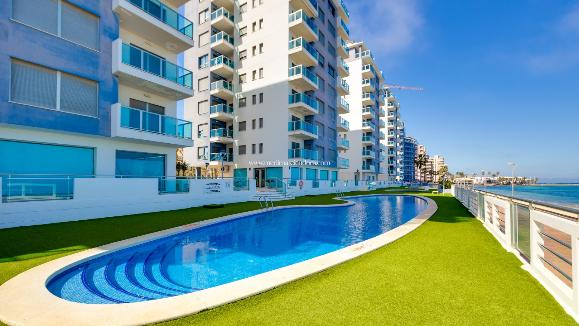 Vanaf het grote, zonnige terras geniet u van een fantastisch uitzicht op zee. Bovendien heeft het appartement een unieke, aaneengesloten ligging met uitzicht op zee aan beide zijden - zowel op de Mar Menor als op de Middellandse Zee.