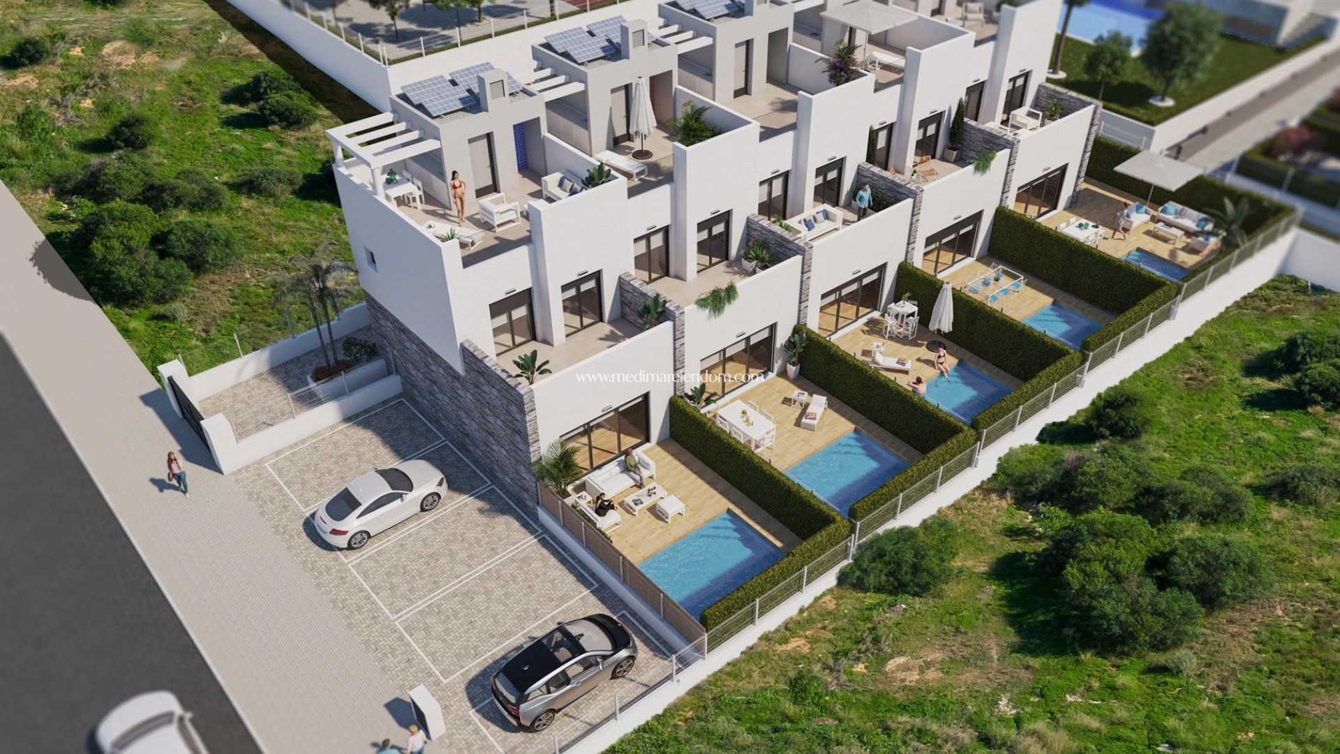 NOWY BUDYNEK KAMIENIC W TORREVIEJA New Build mieszkalnych 5 pięknych właściwości z prywatnymi basenami w Torrevieja. Piękne kamienice mają 3 sypialnie, 2 łazienki, kuchnia na otwartym planie z salonem, wyposażone szafy, taras, prywatne solarium z miejscem do grillowania, ogród z basenem i comunal miejsce parkingowe. Właściwości zbudowany z najwyższej jakości materiałów i wykończeń. Jego niesamowita lokalizacja 5 minut od morza i bliskość głównych obszarów handlowych i rekreacyjnych Torrevieja, jak również pól golfowych, sprawiają, że jest to wyjątkowe i ekskluzywne miejsce do życia. Torrevieja to hiszpańskie miasto w prowincji Alicante, na Costa Blanca. Znane jest z typowo śródziemnomorskiego klimatu i linii brzegowej. Posiada deptaki z kurortami wzdłuż swoich piaszczystych plaż. Małe Muzeum Morza i Soli mieści wystawy dotyczące rybackiej i solnej historii miasta. Wewnątrz, Lagunas de La Mata-Torrevieja Natural Park ma szlaki i dwie słone laguny, jeden różowy i drugi zielony. Lotnisko w Alicante oddalone o 40 minut, a lotnisko w Murcji o około 1 godzinę drogi.