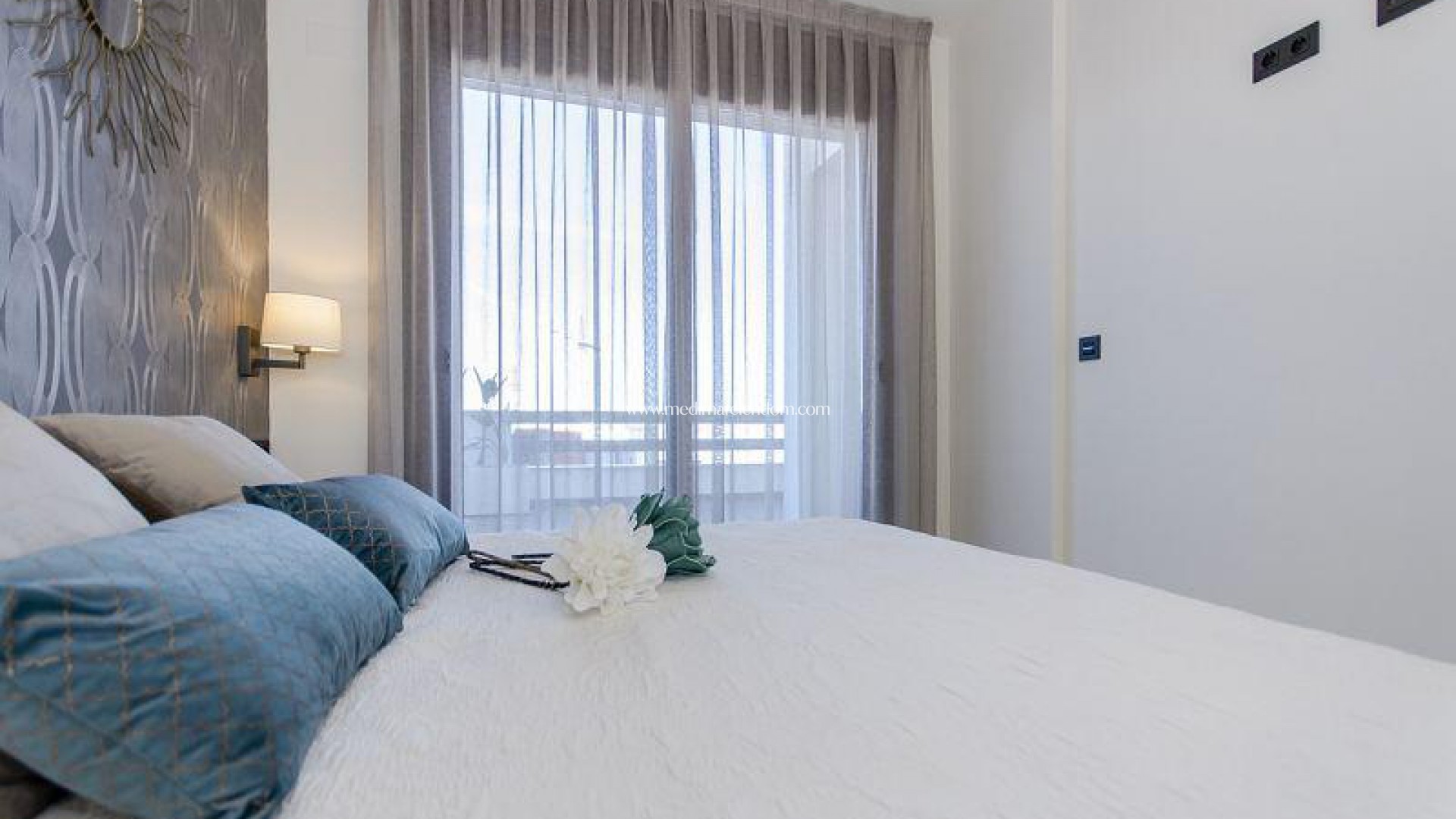 BUNGALOW W SKONSOLIDOWANEJ URBANIZACJI BLISKO MORZA Parterowy bungalow o powierzchni 70,71m2 z 3 sypialniami z szafami wnękowymi, 2 łazienkami z ogrzewaniem podłogowym, salonem-kuchnią-jadalnią na otwartym planie o powierzchni 22m2, przednim tarasem i tylnym ogrodem o łącznej powierzchni 46m2 oraz gankiem o powierzchni 7m2. Nieruchomość jest zorientowana na duży wspólny obszar, który posiada ogrody i dwa baseny. Położony w dzielnicy mieszkalnej Los Balcones, z łatwym dostępem, w pobliżu kilku pól golfowych, szpitala i wszystkich usług. Obiekt Los Balcones położony jest w miejscowości Torrevieja, 3 km od plaży Acequion i 5 km od przystani w Torrevieja, 6 km od centrum handlowego Habaneras Torrevieja oraz 7 km od parku wodnego Aquopolis Torrevieja. Najbliższym lotniskiem jest port lotniczy San Javier, położony 22 km od obiektu Los Balcones.