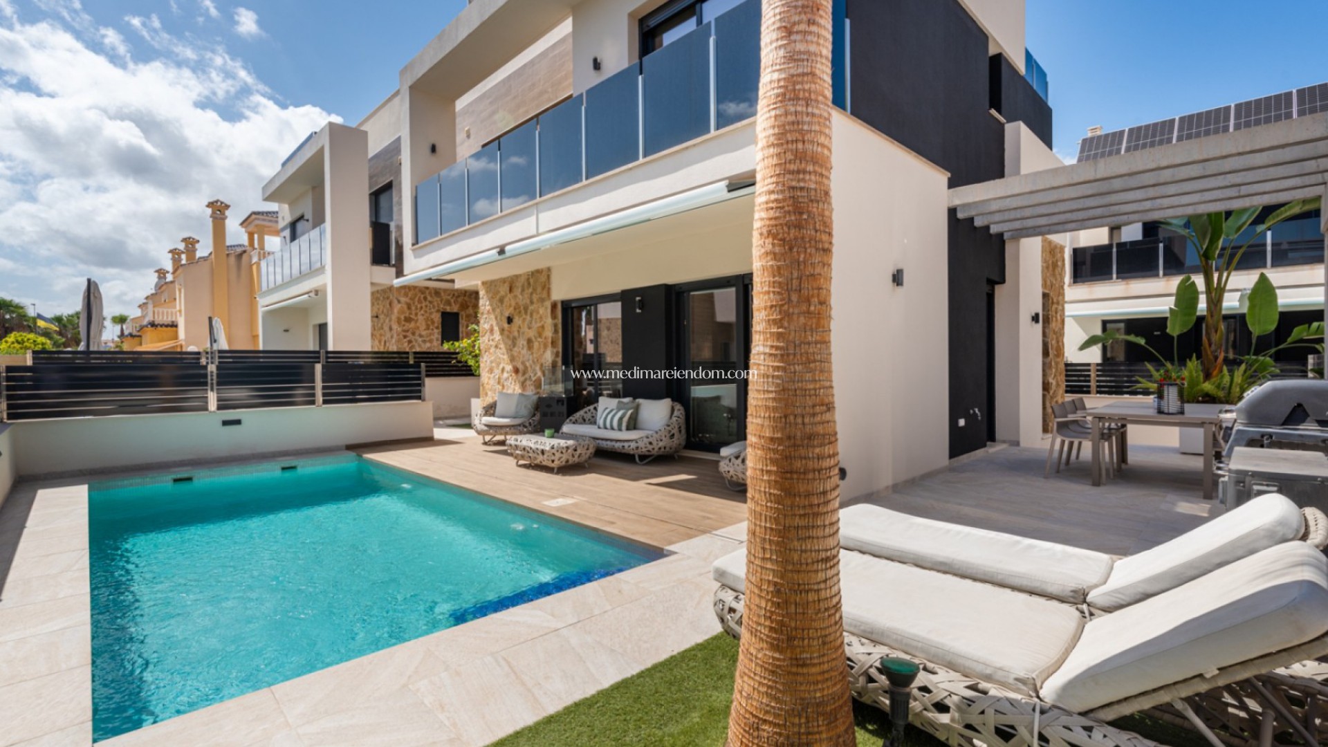 Nowoczesna luksusowa willa położona w Lomas de Cabo Roig na Costa Blanca! Willa ma 3 sypialnie, 4 łazienki, dużą piwnicę, taras na dachu z widokiem na morze i prywatny basen!