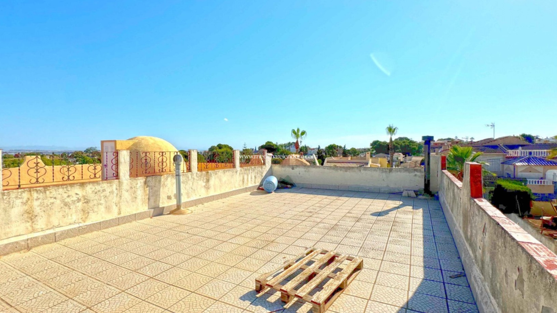 Urocza bliźniacza willa w Los Balcones, Torrevieja – Twój wymarzony dom czeka! Zapraszamy do tej zachwycającej bliźniaczej willi położonej w pożądanej dzielnicy Los Balcones, Torrevieja. Ta nieruchomość oferuje wyjątkowe połączenie komfortu, prywatności i potencjału, dzięki czemu jest idealnym domem zarówno do stałego zamieszkania, jak i spokojnego wypoczynku wakacyjnego. Kluczowe cechy: - Przestronne mieszkanie: Willa oferuje 2 przytulne sypialnie, pełną łazienkę i dodatkową toaletę, zapewniając wygodę Tobie i Twoim gościom. - Przestronna przestrzeń zewnętrzna: Duży ogród to prawdziwa oaza, z pięknym drzewem figowym i bujną winoroślą — idealna do cieszenia się śródziemnomorskim stylem życia. Prywatny basen z zupełnie nowym wyposażeniem zaprasza do ochłodzenia się w ciepłe letnie dni, a zewnętrzny prysznic dodaje odrobinę luksusu do Twojego doświadczenia na świeżym powietrzu. - Uniwersalna piwnica i garaż: Obszerna piwnica zapewnia dużo miejsca do przechowywania, warsztat, a nawet możliwość dodania kolejnych sypialni. Garaż może z łatwością pomieścić pojazd lub służyć jako dodatkowe miejsce do przechowywania. Alternatywnie, jeśli chcesz się rozwijać, ten obszar oferuje mnóstwo opcji, aby stworzyć więcej przestrzeni życiowej. - Nieograniczony potencjał: Dzięki możliwości dodania kolejnego poziomu solarium możesz jeszcze bardziej dostosować ten dom do swoich potrzeb — czy to dodając więcej sypialni, tworząc salon na dachu, czy po prostu powiększając przestrzeń życiową. - Wygodne udogodnienia: Nieruchomość obejmuje również praktyczne pomieszczenie gospodarcze i prywatne miejsce parkingowe, w garażu lub na działce. Niski roczny wskaźnik IBI wynoszący zaledwie 240 € to kolejna atrakcyjna cecha, dzięki której jest to niedrogi wybór. Ta willa oferuje idealne połączenie spokoju, prywatności i wygody, wszystko w tętniącej życiem społeczności blisko sklepów, restauracji i oszałamiających plaż Torrevieja. Nie przegap tej rzadkiej okazji, aby posiadać kawałek raju w Los Balcones — skontaktuj się z nami już dziś, aby umówić się na oglądanie i zobaczyć pełny potencjał tego uroczego domu!