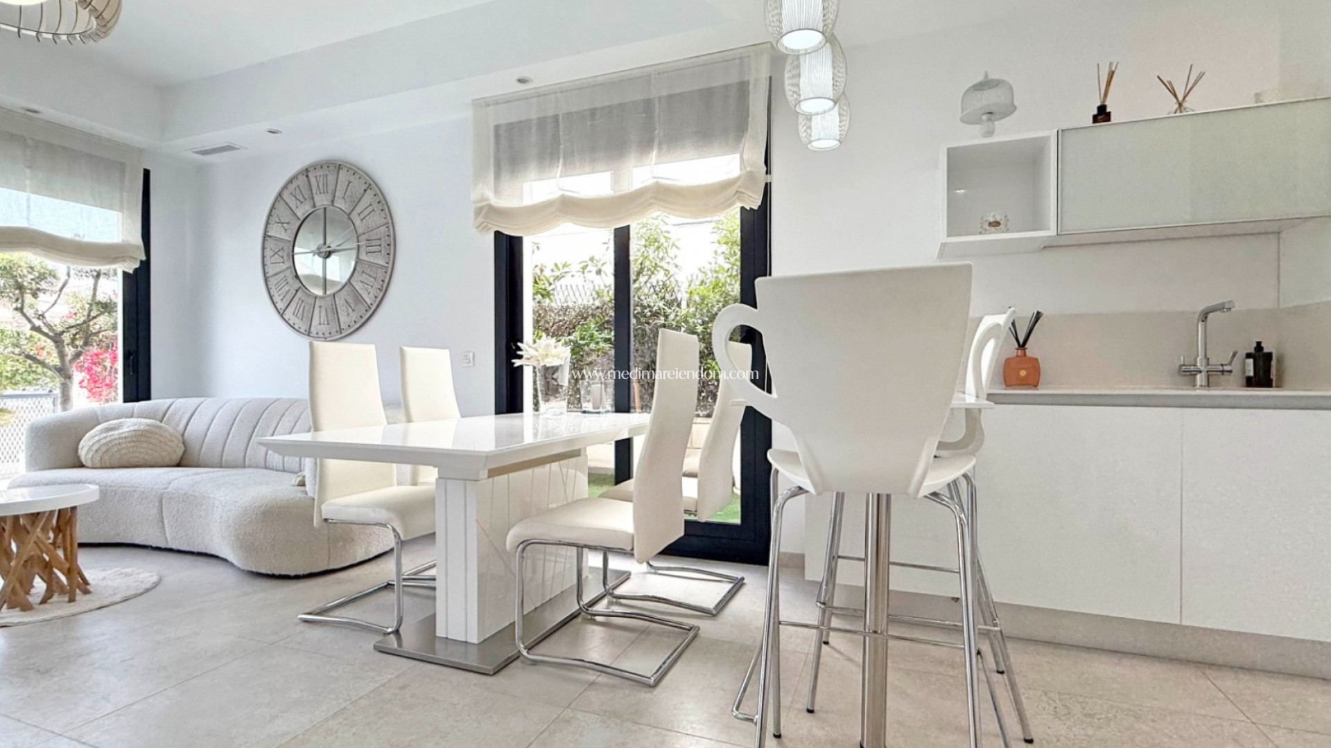 Ten stylowy 3-pokojowy, 2,5-łazienkowy domek szeregowy w poszukiwanym Villamartin oferuje idealne połączenie komfortu, nowoczesnego designu i życia na świeżym powietrzu. Zbudowany w 2017 roku i częściowo umeblowany, obiekt oferuje prywatny basen, przestronny taras na dachu z panoramicznym widokiem na słynne różowe słone jezioro Torrevieja oraz parking terenowy. Wewnątrz znajdziesz otwarty salon i jadalnię, nowoczesną kuchnię, dwie pełne łazienki i wygodną toaletę dla gości. Dom jest zaprojektowany tak, aby cieszyć się nim przez cały rok, z dużą ilością naturalnego światła i nowoczesnymi wykończeniami. Jako część dobrze utrzymanej społeczności, mieszkańcy mają również dostęp do dużego wspólnego basenu i terenów zielonych — idealnych do relaksu lub spotkań towarzyskich. Niezależnie od tego, czy szukasz stałego miejsca zamieszkania, domu wakacyjnego czy inwestycji pod wynajem, ta gotowa do zamieszkania nieruchomość spełnia wszystkie wymagania.