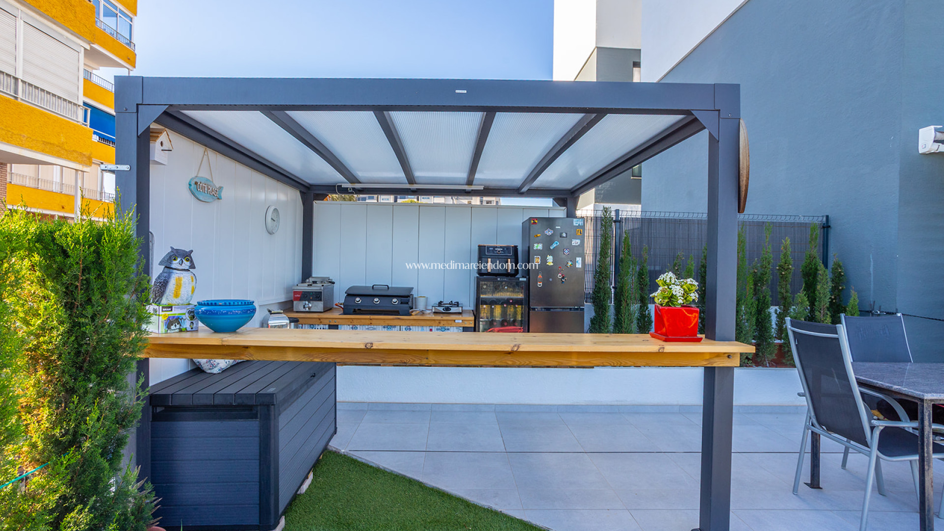 Pod względem architektonicznym kompleks mieszkaniowy optymalizuje przestrzeń, umieszczając części wspólne na dachu. Ten wspólny taras na dachu oferuje basen, jacuzzi i miejsce do grillowania, gwarantując maksymalne nasłonecznienie i niczym niezakłócony panoramiczny widok na Morze Śródziemne.