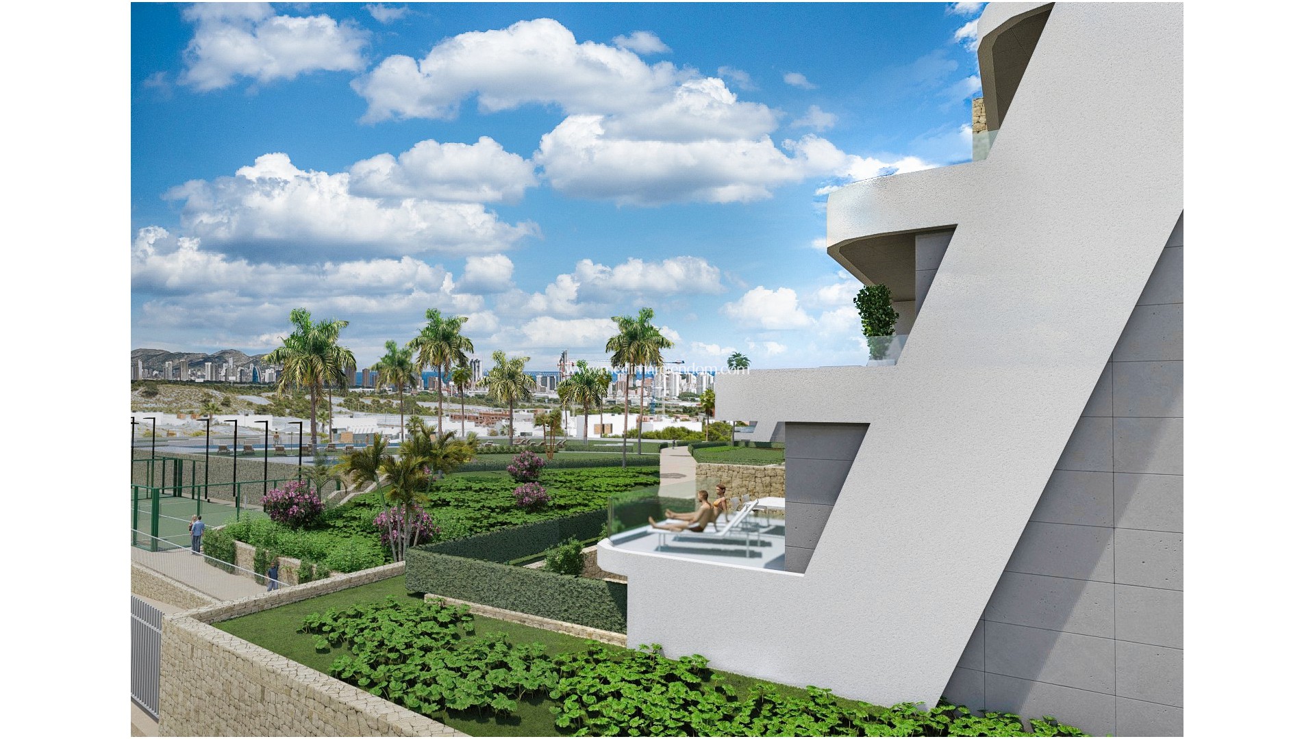 Новый жилой комплекс, состоящий из роскошных апартаментов с 2 спальнями в Финестрате, Бенидорм.