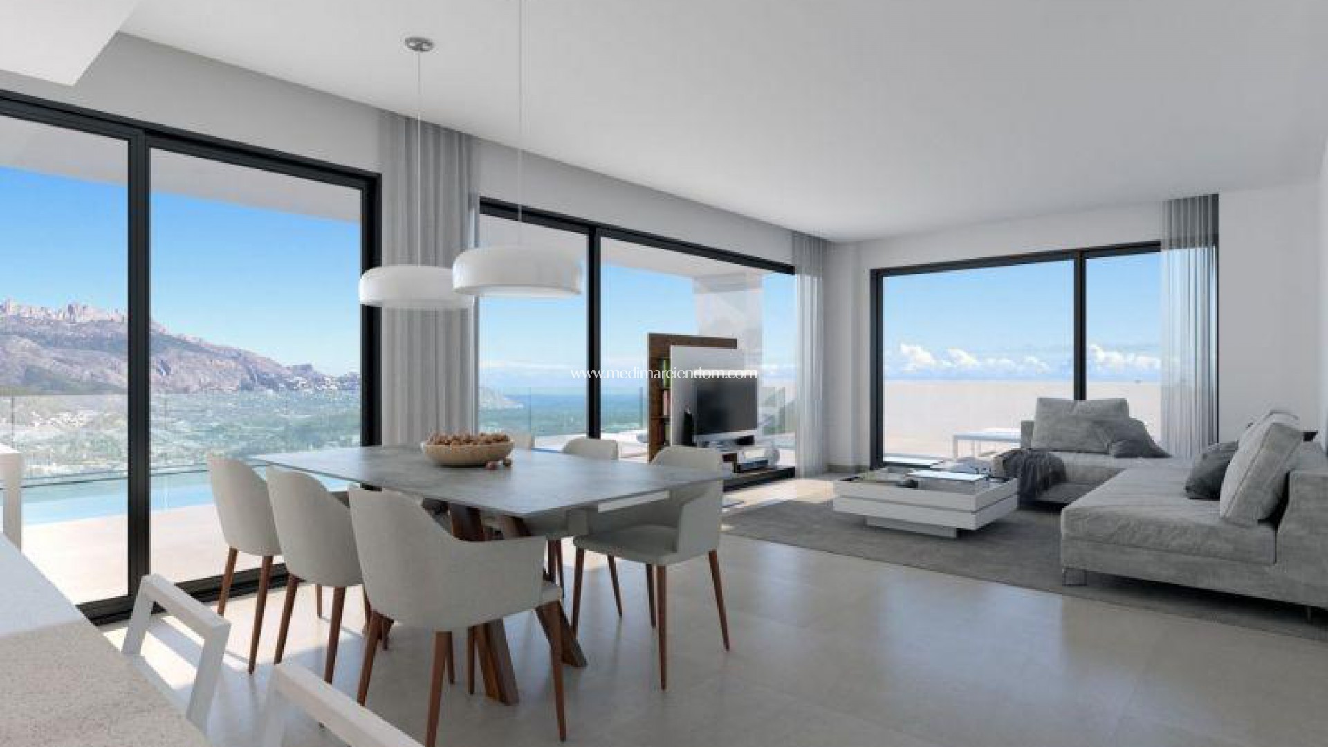 СОВРЕМЕННЫЕ НОВОСТРОИТЕЛЬНЫЕ ВИЛЛЫ В ПОЛОПЕ !!! Окруженный соснами и охраняемый горой Понойг, урбанизация предлагает идеальное сочетание дизайна, комфорта и природы. Дома, в которых можно хорошо жить круглый год. Чтобы оценить очарование окружающей среды как зимой, так и летом. Эта одноэтажная вилла, построенная на участке 456 м2, имеет застроенную площадь 199 м2, распределенную в гостиной-столовой-открытой кухне 39 м2, 3 спальни, 2 ванные комнаты, терраса 42 м2, подвал. 33 м2. Виллы в авангардном стиле с вдохновляющим пейзажным бассейном, с открытыми видами, которые возвышаются над зоной отдыха с площадкой для барбекю для вечеринок, мероприятий или просто повседневной жизни. Роскошная отделка с уютным интерьером в обрамлении больших окон, через которые свет заливает комнаты в течение всего дня. Полы из керамогранита лучших брендов, окна с двойным остеклением, жалюзи с электроприводом, а также термическая и звукоизоляция полов, стен и окон, чтобы ваше жилье всегда было комфортным. Включая: Водонагреватель электрический с аэротермическим Предварительная установка зарядного устройства для электромобиля Канальный кондиционер Техника: керамическая плита, вытяжка, посудомоечная машина, электрическая духовка, стиральная машина. Частный бассейн Парковка на 2 машины Сад с поливом Раздвижная и моторизованная входная дверь для автотранспорта Привилегированное расположение с горными тропами и маршрутами, зелеными насаждениями, кафетерием и ресторанами в нескольких метрах от отеля. До центра Полопа 15 минут пешком или 4 минуты на машине. Ла Нусия 10 мин на машине. Пляжи Алтеи 20 мин на машине. Все возможности для отдыха в Бенидорме (тематические парки, пляж, клубы, рестораны) в 20 минутах езды на машине.