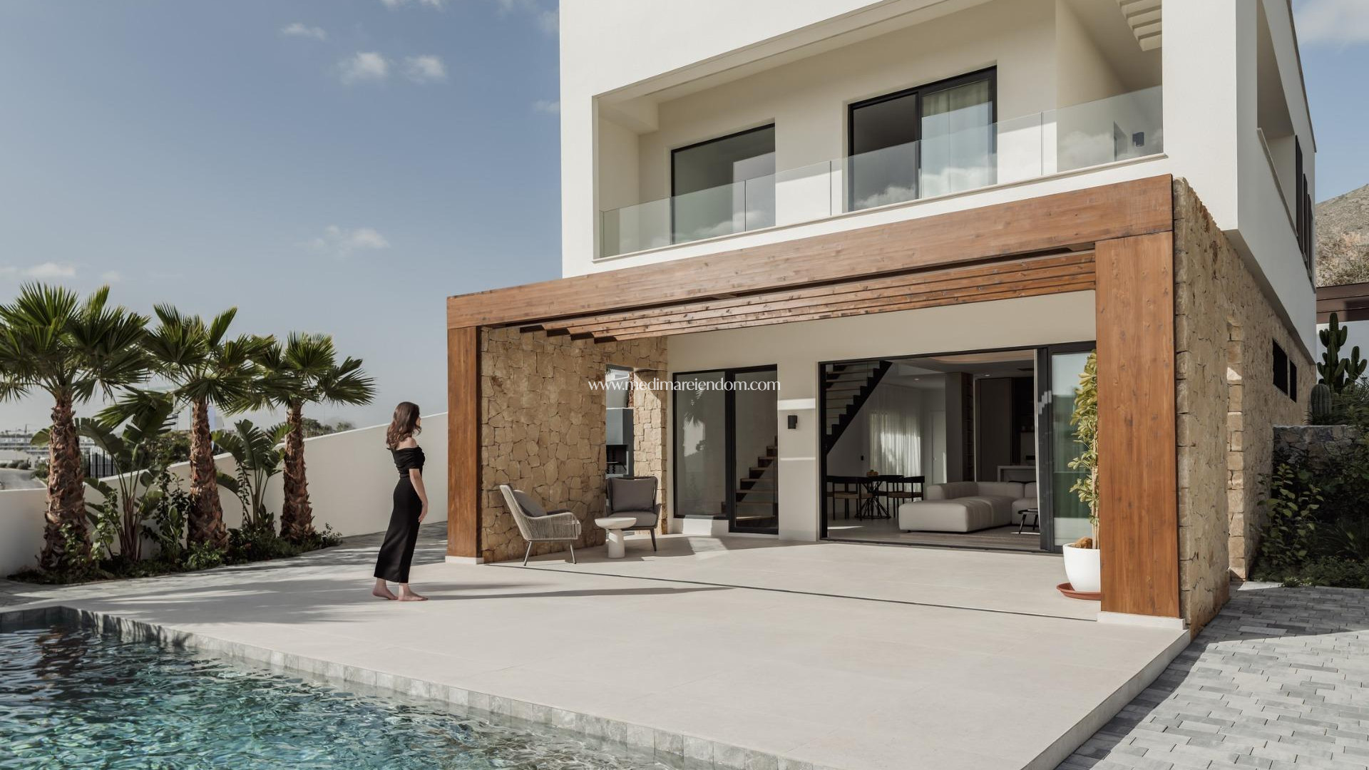 НОВЫЕ ВИЛЛЫ В ФИНЕСТРАТЕ Новые современные виллы в Финестрате. Виллы с 4 спальнями и 4 ванными комнатами, кухней открытого плана с зоной гостиной, террасой с великолепным видом на Бенидорм, частным садом с бассейном и парковочным местом. Боковой сад, украшенный кактусами и белым гравием, соединяет уровень доступа 1 с главным этажом (уровень О). Использование натуральной травы на остальной территории является дополнительной особенностью тщательно продуманного ландшафтного дизайна. Каждый уровень акцентирован материалом, подчеркивающим его суть. Уровень O облицован натуральным известняком, обеспечивающим поддержку всей конструкции. Уровень 1 с его однослойной отделкой и деревянными ставнями обеспечивает защиту самой интимной части резиденции. Наконец, уровень 2, где расположена главная спальня, выходит на просторную террасу и отделан фактурным монослоем теплых тонов. Средиземноморская эстетика достигается благодаря идеальному слиянию традиций, современной архитектуры и природы. Поселок Финестрат расположен в регионе Марина Байша на побережье Коста Бланка, недалеко от соседнего Бенидорма и примерно в 40 км от города Аликанте и международного аэропорта. Поселок расположен на склоне горы Пуиг Кампана, откуда открываются прекрасные виды на горы, побережье и Средиземное море. Бенидорм находится всего в пяти минутах езды от поселка и предлагает все необходимые услуги, включая магазины, бары, рестораны, супермаркеты, банки, аптеки и несколько частных международных школ.