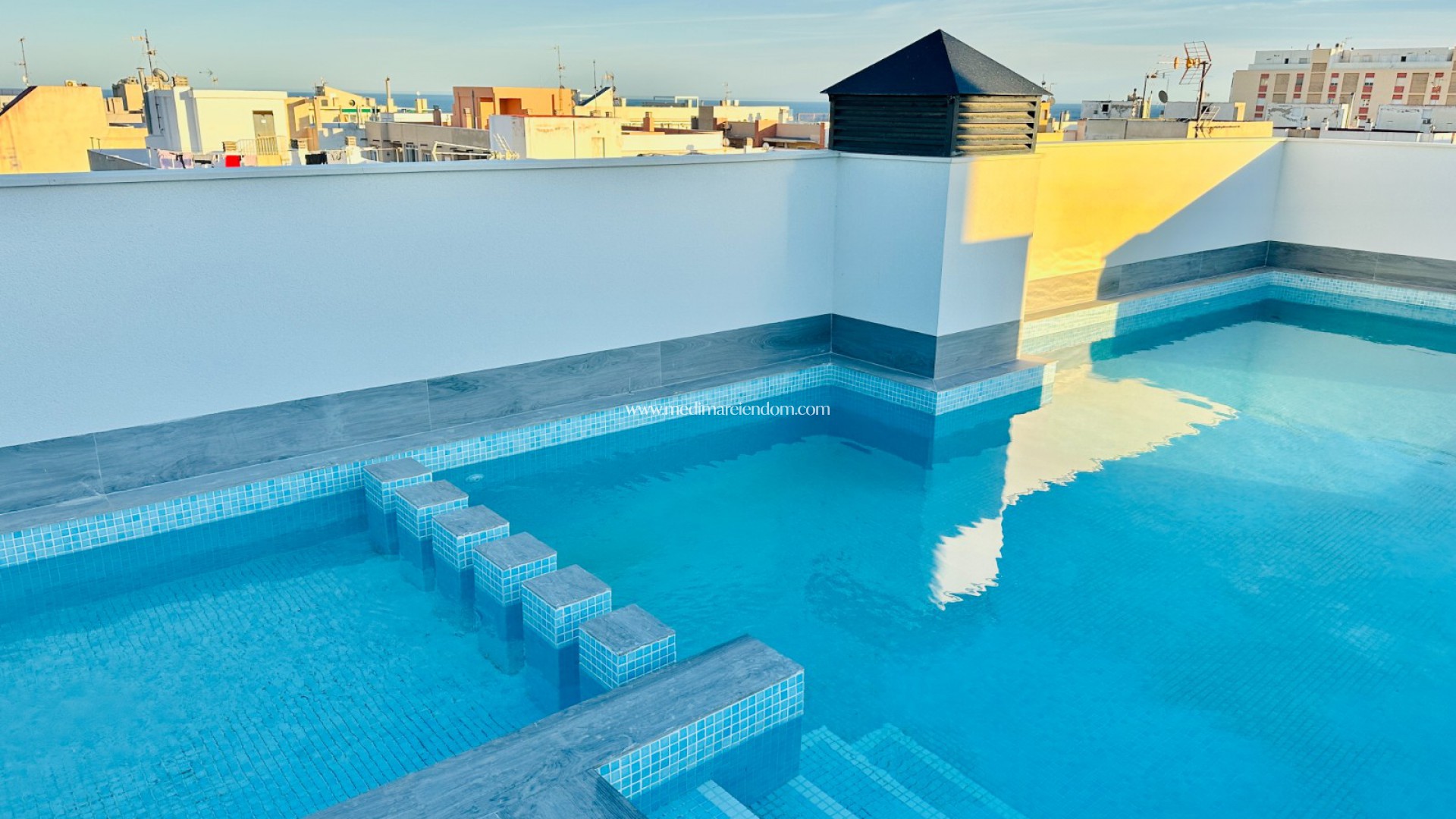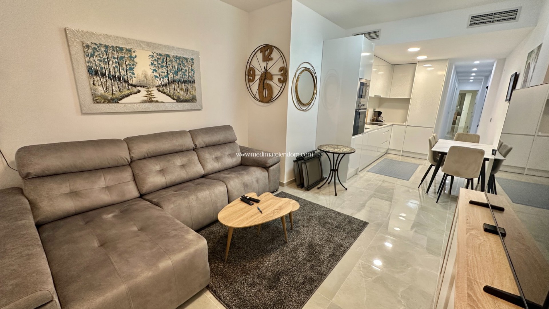 Современная квартира с 2 спальнями, 2 ванными комнатами, гостиной с открытой кухней и террасой, расположенная в центре Торревьехи!