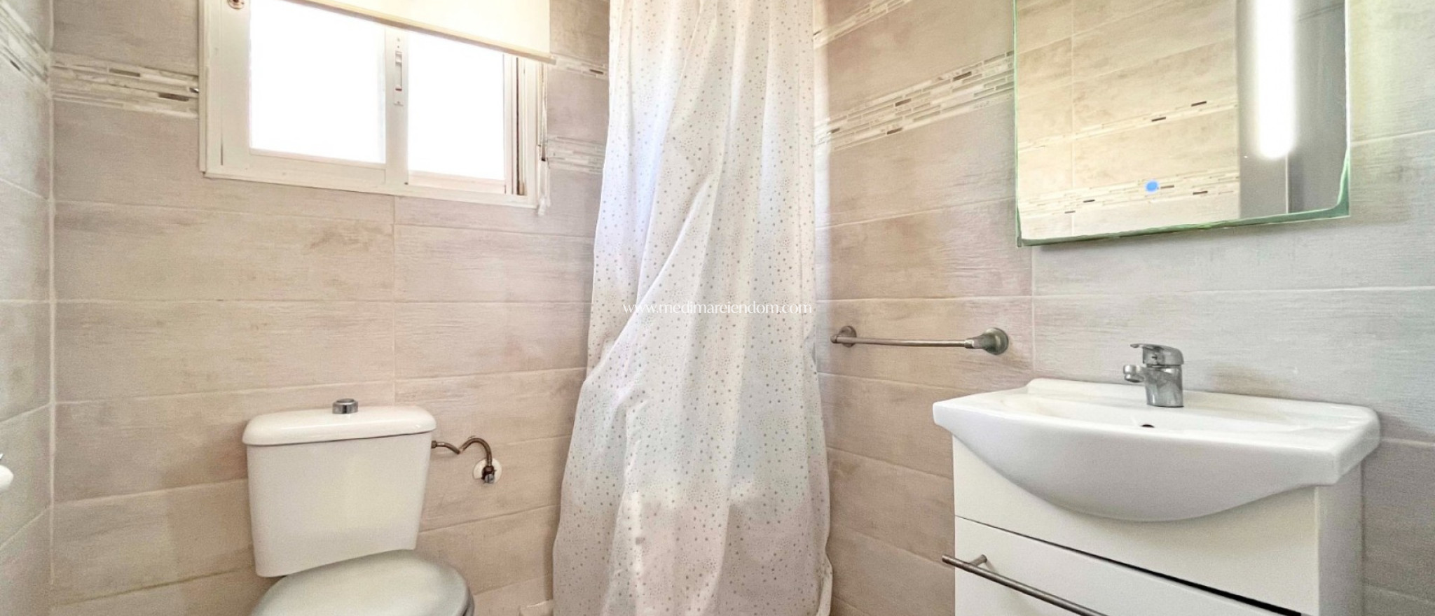 На втором этаже находятся две светлые спальни, каждая из которых наполнена естественным светом, а также семейная ванная комната. Терраса на крыше открывает захватывающие виды на море, создавая идеальные условия для наслаждения морским бризом и прибрежными пейзажами.