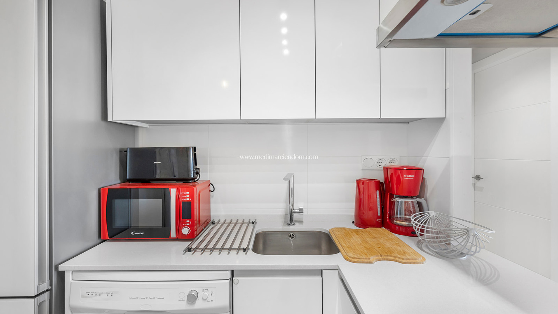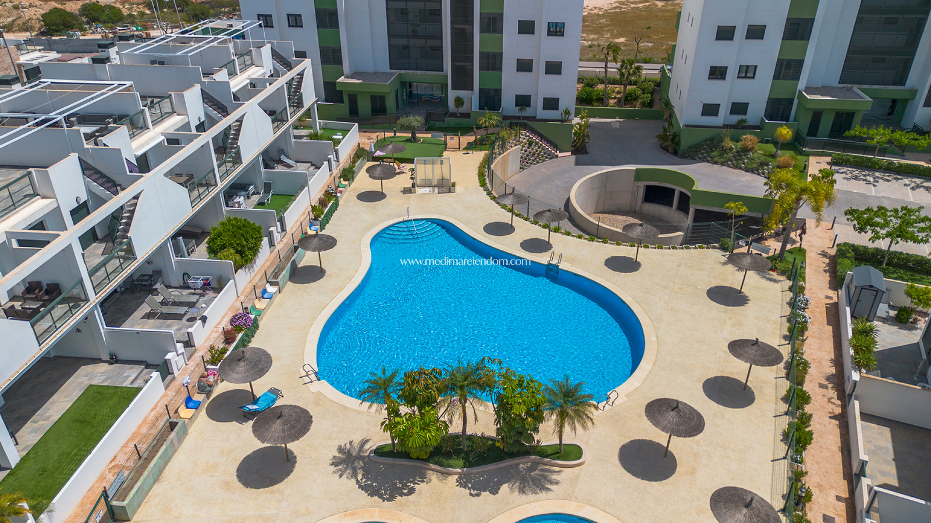 Эта современная квартира расположена в престижном районе Миль-Пальмерас, в Пилар-де-ла-Орадада, всего в 400 метрах от белоснежных пляжей Средиземного моря. Апартамент занимает верхний этаж двухэтажного здания, построенного в 2020 году, и сочетает в себе комфорт, современный дизайн и отличное местоположение. Общая площадь составляет 77,3 м², в том числе две спальни, две ванные комнаты, кухня итальянского стиля с барной стойкой и светлая гостиная с выходом на террасу площадью 12 м² с видом на зону общего пользования. Особое преимущество квартиры — это частный солярий площадью 30 м² с видом на море, выдвижной перголой и декоративным вертикальным садом — идеальное место для отдыха и наслаждения климатом. Недвижимость продается полностью меблированной и оборудованной, включая кондиционер, частное парковочное место и доступ на этаж на лифте. В жилом комплексе имеются две общие бассейны, тренажёры на открытом воздухе, зоны отдыха и благоустроенные сады с пальмами, создающие спокойную и уютную атмосферу. Миль-Пальмерас — это развитый жилой район, предлагающий все необходимые удобства в шаговой доступности: рестораны, супермаркеты, торговые центры, а также пляжи с Голубым флагом и знаком туристического качества «Q». До аэропорта Аликанте всего 50 минут на автомобиле, а до развлекательных и гастрономических заведений — всего 5 минут. Это отличный вариант как для постоянного проживания, так и для инвестиций в аренду на время отпуска.