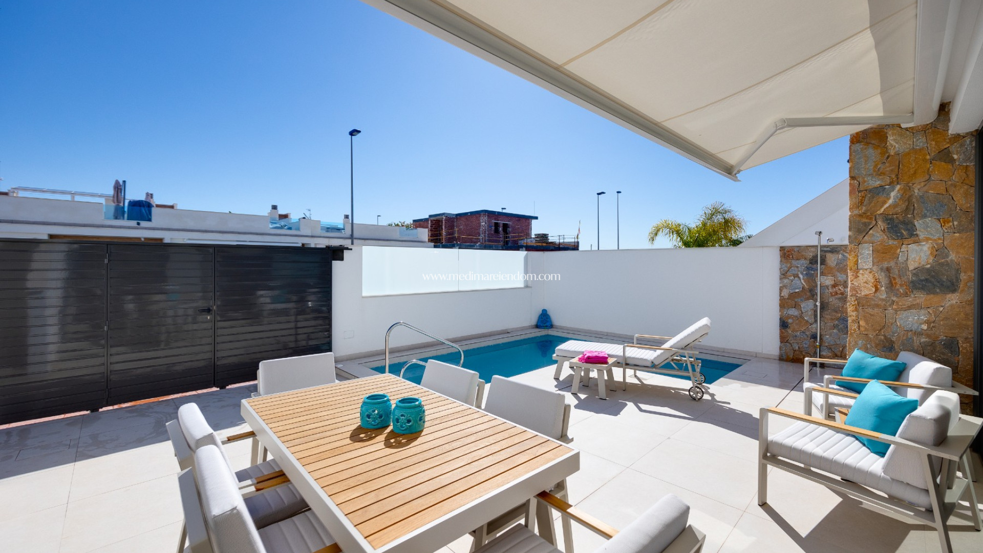 Шагните в виллу своей мечты на солнечном побережье Сан-Хавьер, Мурсия . Этот совершенно новый современный дом предлагает 100 м² стильной жилой площади на участке площадью 220 м² — идеально подходит для наслаждения средиземноморским стилем жизни.
