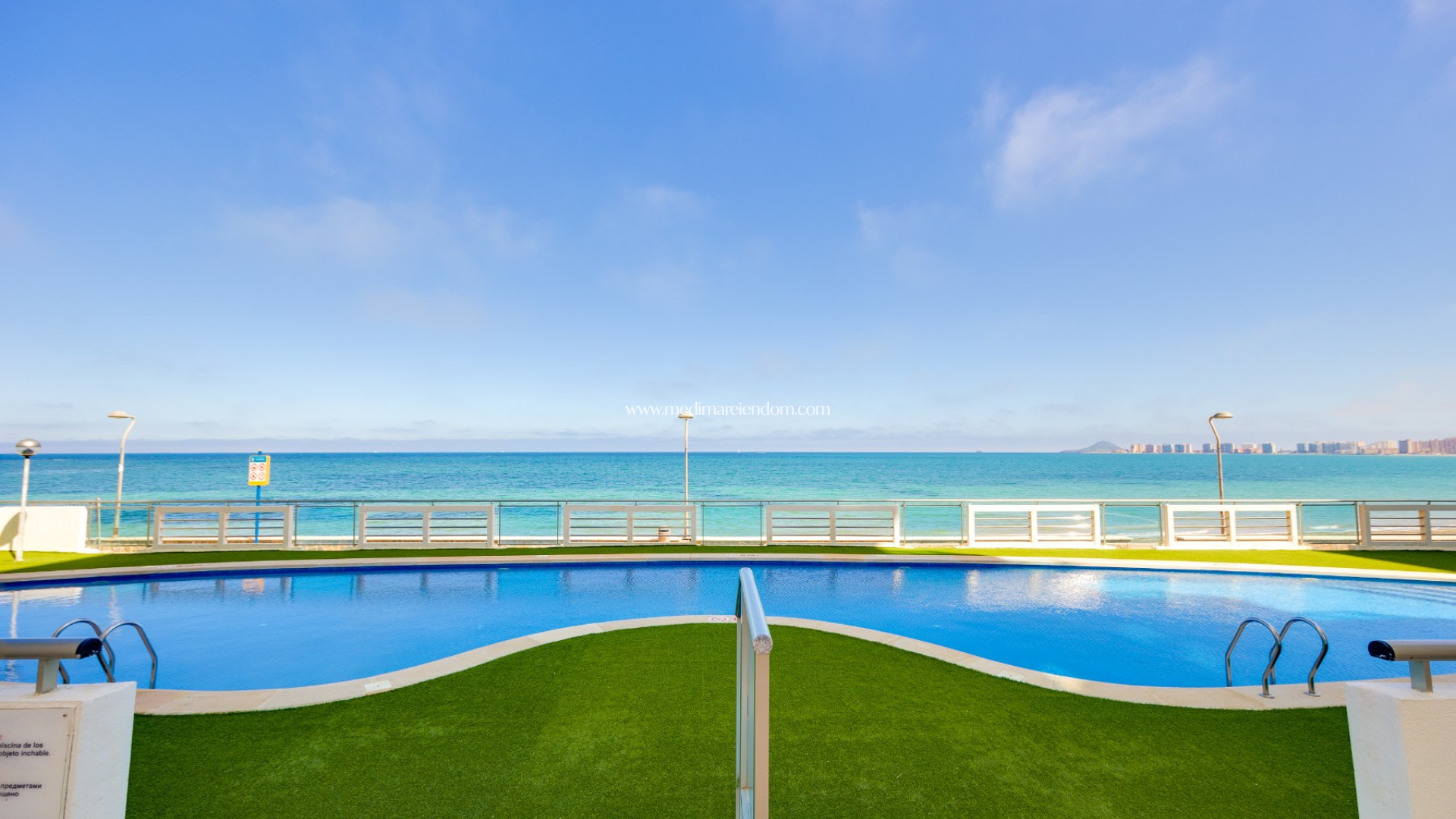 С просторной солнечной террасы открывается фантастический вид на море. Кроме того, апартаменты имеют уникальное расположение, обеспечивающее непрерывный вид на море с обеих сторон — как на Мар-Менор, так и на Средиземное море.
