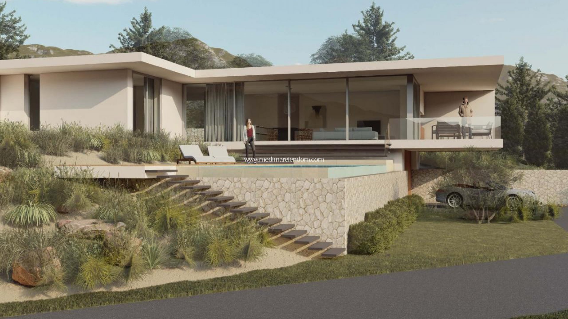 Denna villa kommer att byggas på ett plan plus källare på en tomt på 1479 m2 med privat pool och har 3 sovrum, 4 badrum, ett vardagsrum med kök och ett garage.