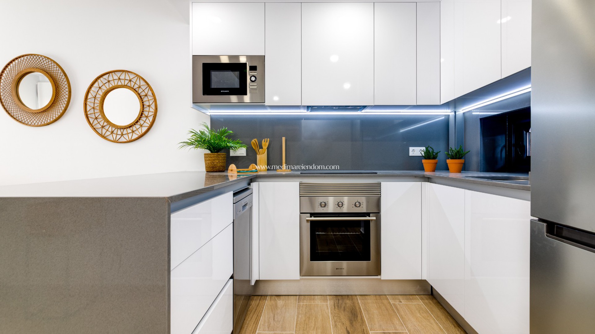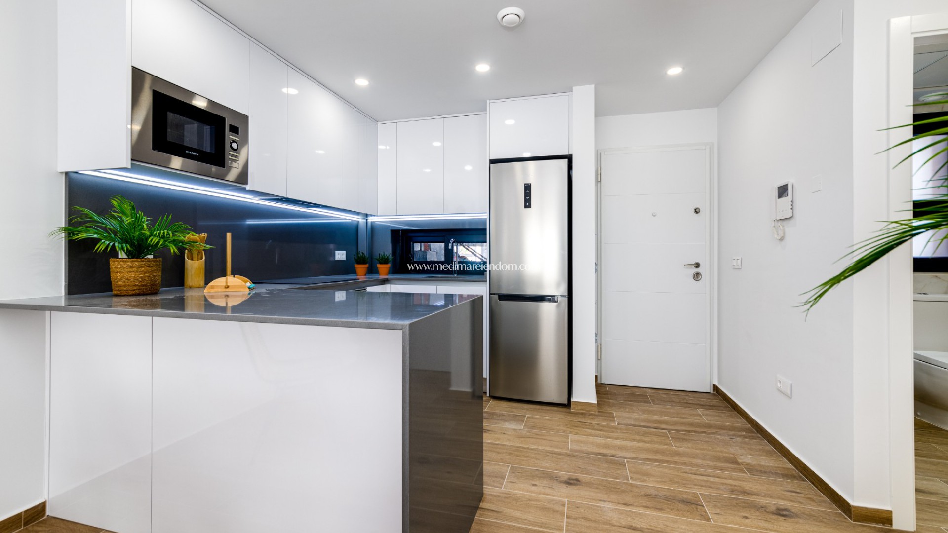 Lägenheterna har 2-3 sovrum, 2 badrum, ett vardagsrum med kök och en terrass. Du kan välja mellan en lägenhet på bottenvåningen med egen trädgård, en lägenhet på mitten med terrass eller en lägenhet på översta våningen med en privat takterrass.