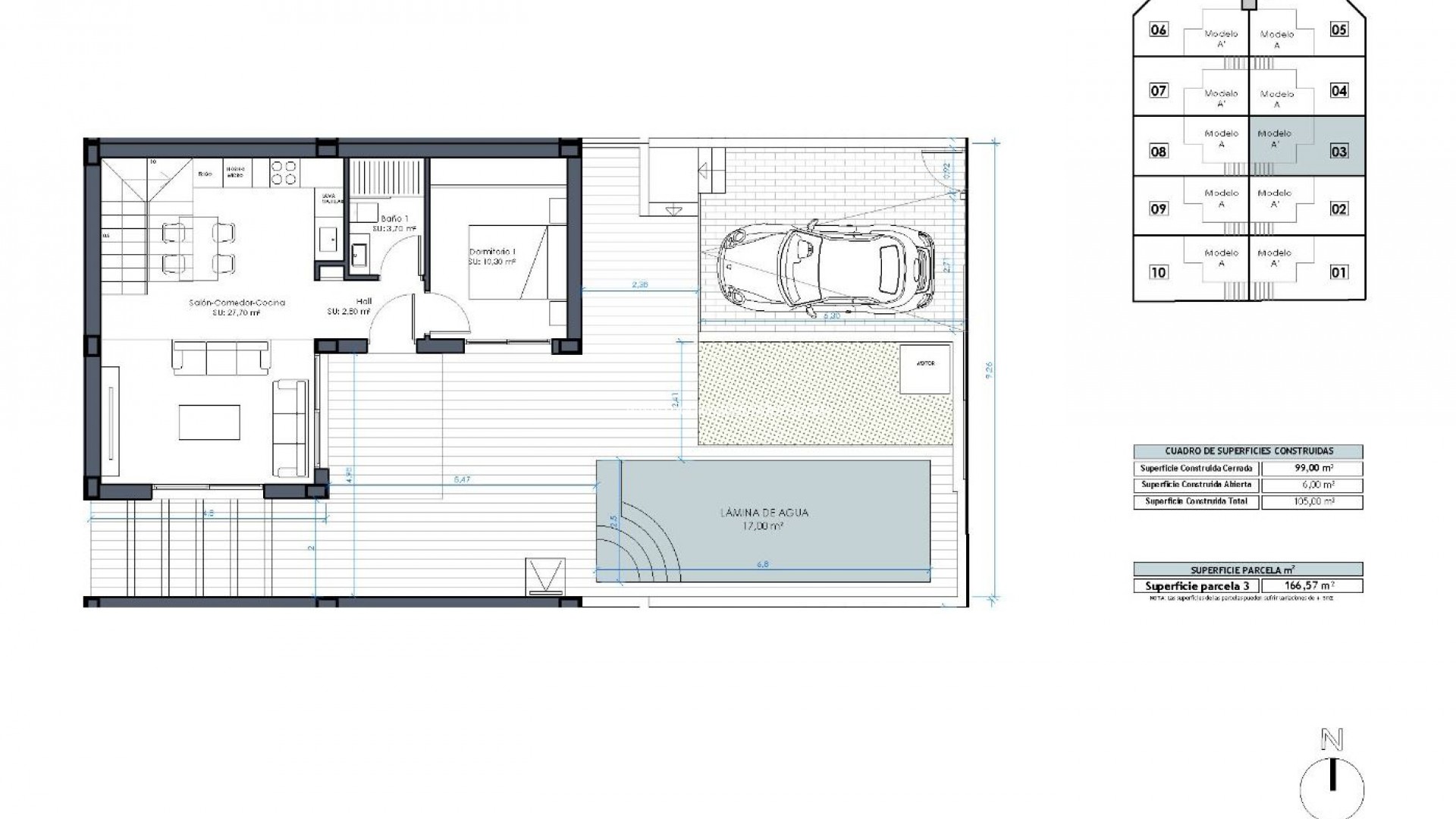NYBYGGDA PARHUS I DOLORES Nybyggda parhus i Dolores, nära stränderna La Marina och Guardamar. Nybyggd bostadsområde med 10 parhusvillor med 3 sovrum, 2 badrum, öppet kök med vardagsrum, inbyggda garderober, privat trädgård med pool och parkeringsplats utanför vägen. Dolores är en stad som ligger i kommunen Vega Baja del Segura i södra Alicanteprovinsen, Spanien. Staden ligger i hjärtat av Segura huerta ca 10 km från de närmaste stränderna i La Marina och Guardamar. Komplexet ligger 30 minuter från Alicantes flygplats och 1 timme från Murcia - Corveras flygplats.