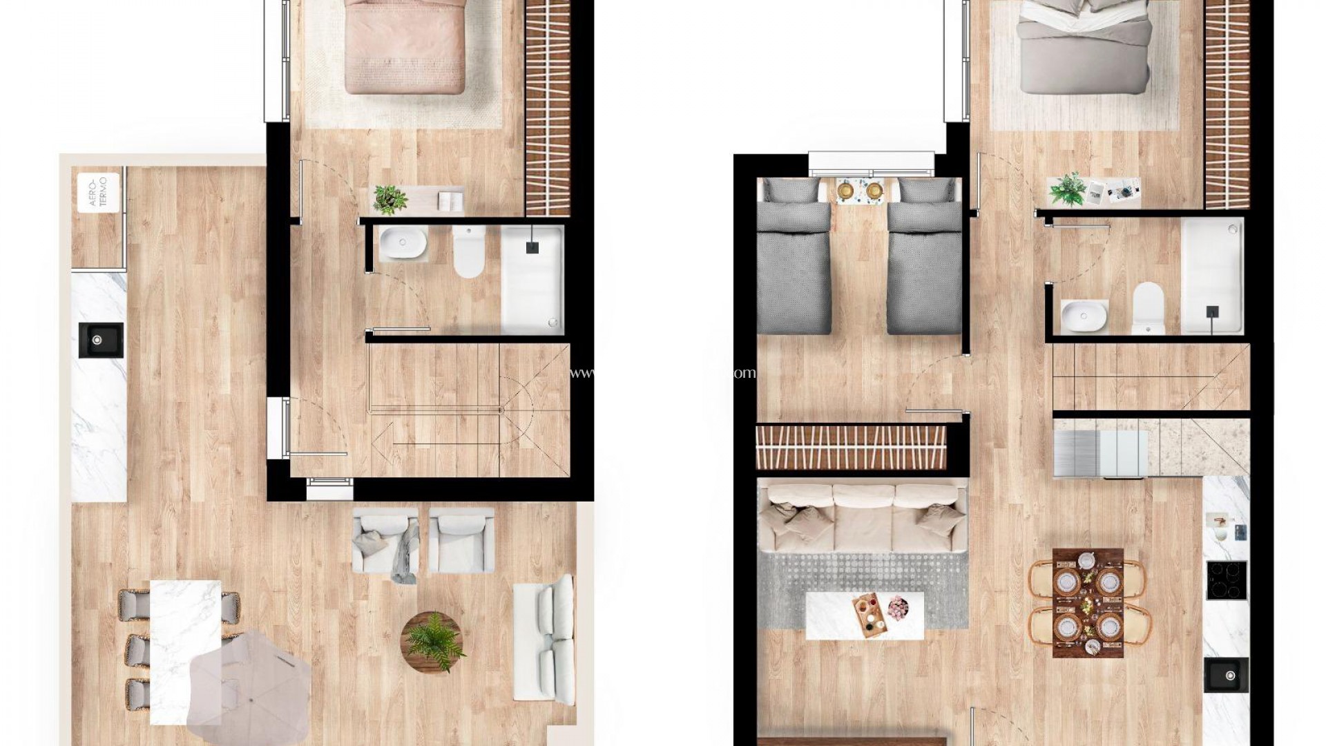 NYBYGGDA BUNGALOWLÄGENHETER I SAN PEDRO DEL PINATAR Nybyggnation av 10 moderna bungalowlägenheter i San Pedro del Pinatar. Dessa lägenheter är nyckelfärdiga. Bottenvåningen bungalows är med 2 sovrum och terrass och takvåningarna har 3 sovrum och solarium. Öppen planlösning kök och ett vardagsrum/matsal som leder till terrassen, inbyggda garderober. Det finns en gemensam pool. San Pedro del Pinatars privilegierade läge vid Mar Menor och Medelhavskusten det lockar de som är intresserade av segling och vattensport, som erbjuder marinan förtöjning och segelklubbar, medan stränderna och de naturliga gyttjebaden lockar de som söker säker sol, hav och sand. San Pedro del Pinatar har ett etablerat samhälle och erbjuder ett utmärkt utbud av aktiviteter, bland annat en täckt pool och idrottsanläggningar, samt ett program med sociala aktiviteter året runt genom det behagliga vintervädret. Fördelarna med de för regionen typiska gyttjebaden eller det lugna vattnet i Mar Menor har gynnat tillväxten av Lo Pagán, som för närvarande har alla typer av bekvämligheter. Dessutom har den ett utmärkt läge, bara 5 minuter från handelscentret Dos Mares. Murcia/Corvera flygplats ligger 30 minuter bort och Alicante flygplats ligger en timmes bilresa bort.