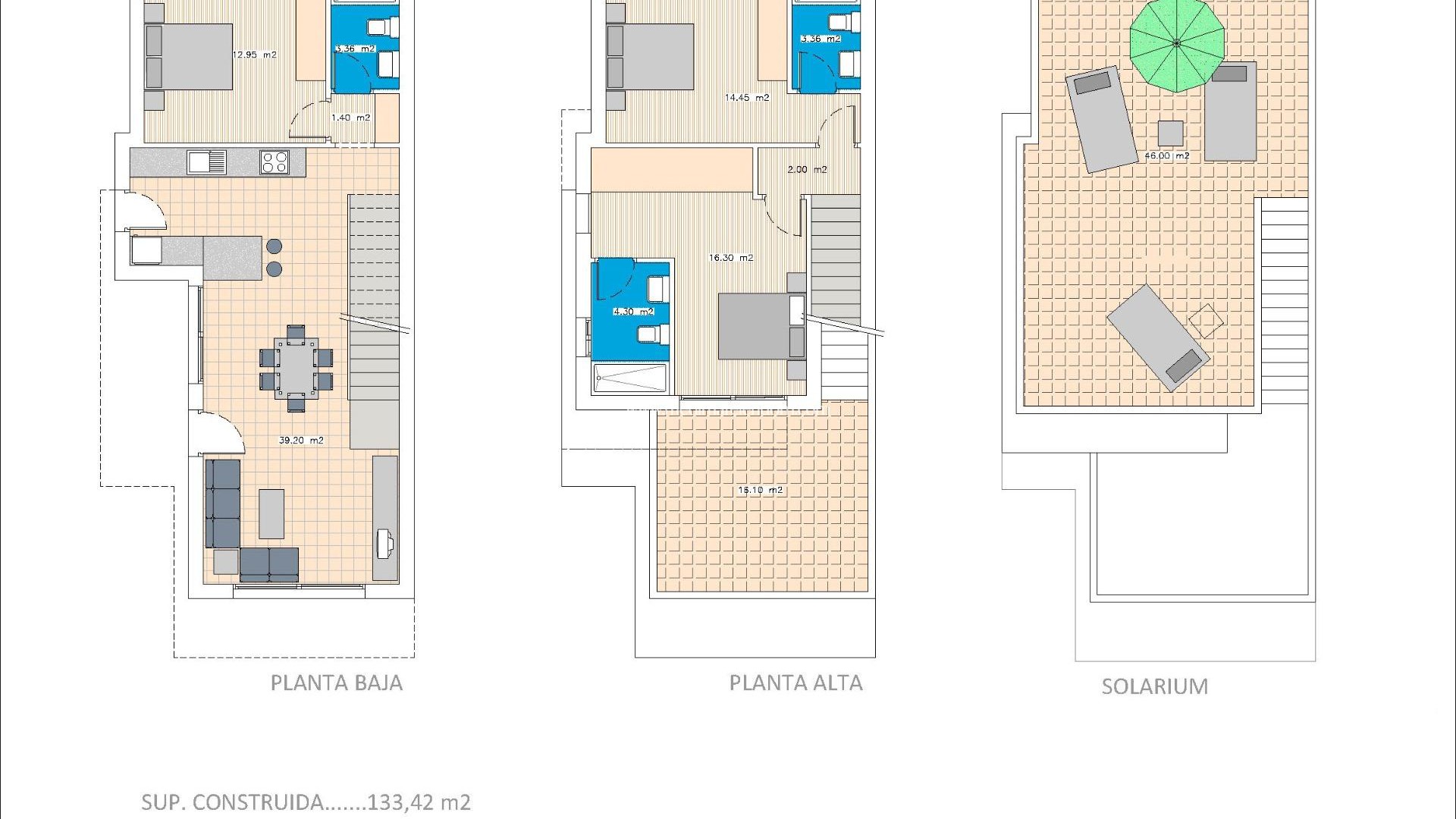 NY VILLA I BENIJÓFAR MED PRIVAT POOLVilla med 3 sovrum, 3 badrum, kök öppet mot vardagsrum/matsal, tomt på 192 m2 med privat pool och terrass på första våningen på 16 m2 med öppen utsikt. Från första våningen finns tillgång till ett privat solarium på 46 m2 med fri utsikt. Benijófar ligger på den högra stranden av Segura-floden, det är väl kommunicerat med Orihuela och Guardamar del Segura vid vägen som leder dig till dess underbara fina sandstränder, mindre än 8 km bort. Det finns flera golfbanor i det omgivande området (mindre än 4 km bort). Det är också anslutet med en lokal väg till Torrevieja. Det är 30 km från Alicante flygplats, 42 km från Alicante stad och 85 km från Benidorm.