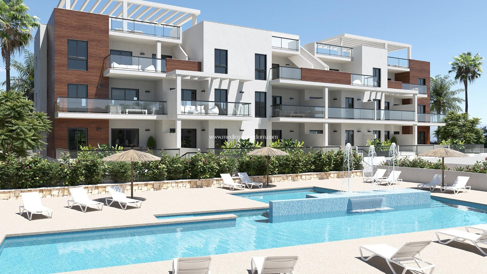 NYBYGGT BOSTADSOMRÅDE I TORRE DE LA HORADADA Nybyggd bostadsområde med lägenheter, takvåningar och bungalows med 2 och 3 sovrum, 2 badrum i Torre de la Horadada bara 300 meter från stranden. Bungalows på bottenvåningen med privata trädgårdar, takvåningar och bungalows på översta våningen med privat solarium. Alla med inbyggt kök med höga och låga möbler. Det finns även en tvättstuga och förinstallation för luftkonditionering. Bostadsområdet består av gemensamma pooler och trädgårdsområden. Alla fastigheter har privat parkering. Torre de la Horadada ligger söder om Alicante i ett vackert läge vid kusten. De vackra stränderna Torre de la Horadada och Mil Palmeras har fin sand och vacker strandpromenad. Det finns många restauranger, barer och butiker, även vattensporter, dykning och snorkling. Det finns goda förbindelser bara 40 minuter från Alicantes och Murcias Corveras flygplatser, med stora kommersiella köpcentrum och flera golfbanor som alla ligger inom räckhåll.