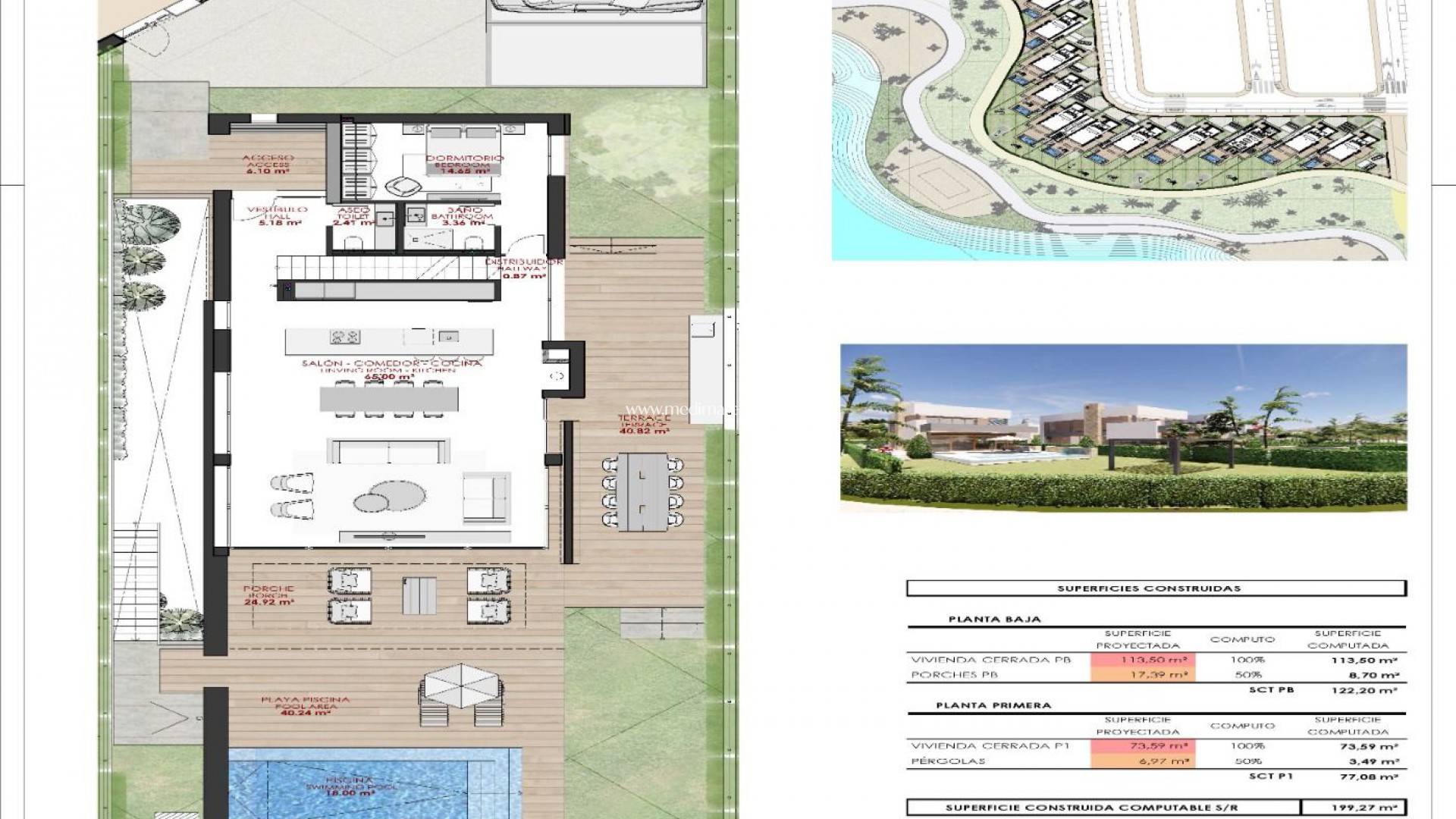 NYBYGGDA VILLOR I PRIVAT GATED RESORT I PROVINSEN MURCIA 14 exklusiva nybyggda villor på en utmärkt tomt med utsikt över sjön på denna vackra nya sjö- och livsresort. Det finns tomter tillgängliga som varierar i storlek från 392 m2 upp till 745 m2. Villorna kommer att vara på två våningar plus en källare på 150 m2 med ett atrium. Interiören är helt anpassningsbar för att passa dina önskemål. Villorna har 4 sovrum, 4 badrum, öppet kök med vardagsrum, inbyggda garderober, privat trädgård med pool och parkeringsplats utanför vägen. Ligger i en privat gated resort, med en huvudingång och 24 timmars säkerhet. Anläggningen är utformad runt ett imponerande grönområde på 126 000 m2. Den omfattar gång- och cykelvägar, idrottsanläggningar, paddel- och tennisbanor, en minigolfbana, trädgårdar, hundparker, fritidsområden, klubbhus..... I det centrala området finns också ortens juvel, en kristallklar konstgjord sjö med nästan 17 000 m2 vattenyta, omgiven av vita sandstränder och palmer, som ger Murcia en bit av Karibien. Det finns två öar i sjön, en av dem har en egen bar, och det finns även "beach Chiringuitos" utspridda runt sjön. Anläggningen är strategiskt belägen mindre än 4 km från stranden och staden Los Alcázares, där du kan utöva olika vattensporter, omgiven av flera golfbanor och staden Cartagena mindre än 15 minuter med bil och 22 km från Murcias flygplats, vilket gör att du har ett brett kulturellt, gastronomiskt och sportsligt utbud inom räckhåll.