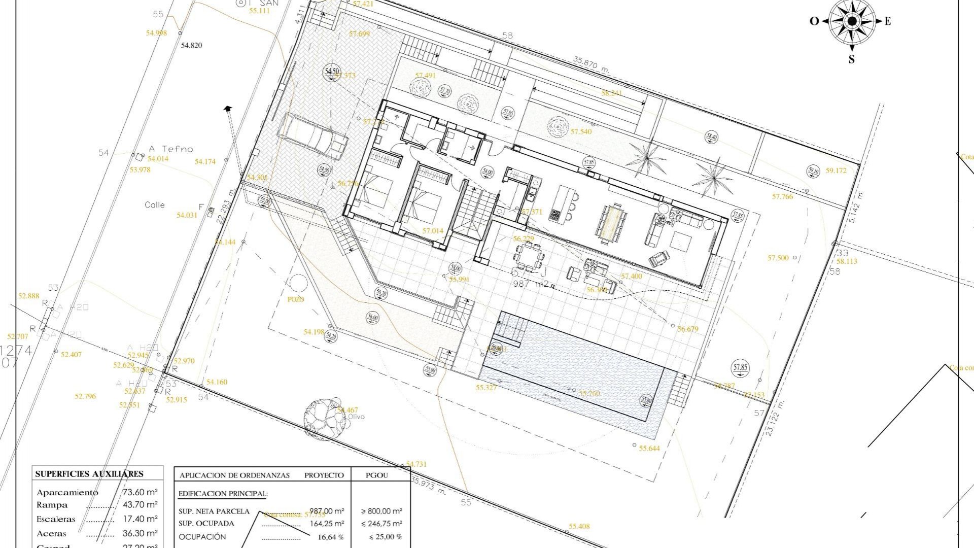 NYBYGGD LYXVILLA MED HAVSUTSIKT I CALPE Denna nybyggda villa ligger på ett utmärkt läge i Calpe, som är omtyckt av invånarna för sin närhet till centrum, stränderna och sitt lugna men säkra läge i utkanten av staden. Huset är utformat med tre våningar. Huvudvåningen består av en entréhall som leder till vardagsrummet, inklusive ett fullt utrustat kök med skafferi, en matsal och ett vardagsrum som öppnar sig mot en terrass med pool och en avkopplande yta för solbad och uteservering. På denna våning finns också två sovrum, två badrum och ett förråd. På första våningen finns ett sovrum med en walk-in-garderob och eget badrum samt en terrass med havsutsikt. Det finns ytterligare ett sovrum med eget badrum och klädkammare på denna våning. Källaren har ett garage med elektronisk dörr, med plats för två fordon, cyklar och inklusive två tekniska rum och en tvättstuga. Huset i sin helhet är inhägnat och har två tillträdesdörrar, en för fotgängare med elektronisk dörröppning och en annan för motorfordon med fjärrkontroll. Modernt kök med laminatdörrar kombinerat med släta vitlackerade dörrar inklusive lådor med stoppare och Silestone-bänkskivor på vitt. Inkluderade varor: ugn, mikrovågsugn, vitrokeramikhäll, fläktkåpa, kylskåp med paneler och diskmaskin med paneler. De inbyggda garderoberna har skjutdörrar och är fodrade på insidan med bagagefack, hyllor och hängstång. Badrummen har Roca-toaletter av modellen "The Square". Även Roca "Victoria" kommod med spegel med integrerad LED-belysning. Duschbrickorna kommer att ha samma finish som husets golv (halkfritt) och ett fast glashandtag. Utomhusområdena behåller den kvalitet och design som planerats för husets inre, både när det gäller användningen av högkvalitativa material och konfigurationen av utrymmena med valfria stadsmöbler. Belysning för utomhusutrymmena runt huset samt för fotgängare, väganslutningar, terrasser och grillplatser ingår. Trädgården är utrustad med ett automatiskt bevattningssystem. Alla trädgårdsytor kommer att vara täckta med grus och ett geotextilnät kommer att finnas på undersidan. En storlek på 52m2 ungefär, inbyggda trappor, subaquatic led spotlights. Inklusive: filter, pump, elpanel och interiör - mosaikfinish. Den har också förinstallation för uppvärmning med värmepump, ett helt färdigt och asfalterat anläggningsrum, samt ett slutet rum med ventilation där poolanläggningen är inrymd. Utrymmena i ditt hus njuter av naturligt ljus genom de stora fönstren. Samt en LED-spotlight inne i hela huset. Det uppvärmningssystem som valts för ditt hus är ett golvvärmesystem som ger en värmefördelning anpassad till människokroppens idealiska behov. Luftkonditioneringen kommer att fungera genom ett luftventilationssystem. Säkerhetsgrind vid ingången från första kvaliteterna, hus med staket som tillhandahålls inklusive antiväxelankare för fastsättning i skiljeväggen, säkerhetsgångjärn, säkerhetslås och en lackerad aluminiumfinish enligt tekniskt projekt. Resten av innerdörrarna följer den allmänna estetiken i ditt hem, med släta vitlackerade dörrar med dolda gångjärn på så sätt skapas ett rent, elegant och tidlöst utrymme (2,40 m högt). Calpe, en av städerna i La Marina Alta, ligger på den norra kusten i provinsen Alicante, omgiven av städerna Altea, Benidorm, Teulada-Moraira och Benissa. Calpe har en underbar blandning av gammal valenciansk kultur och moderna turistanläggningar. Det är en utmärkt utgångspunkt för att utforska det lokala området eller njuta av de många lokala stränderna. Bara Calpe har tre av kustens vackraste sandstränder. Calpe har också två segelklubbar: Real Club Náutico de Calpe och Club Náutico de Puerto Blanco. Fiskebyn Calpe har nu förvandlats till en turistmagnet, och staden har ett idealiskt läge, lätt att nå via motorvägen A7 och N332 som går från Valencia till Alicante. Det är ungefär en timmes bilresa från flygplatsen i Alicante och 1,5 timmar till Valencias flygplats.