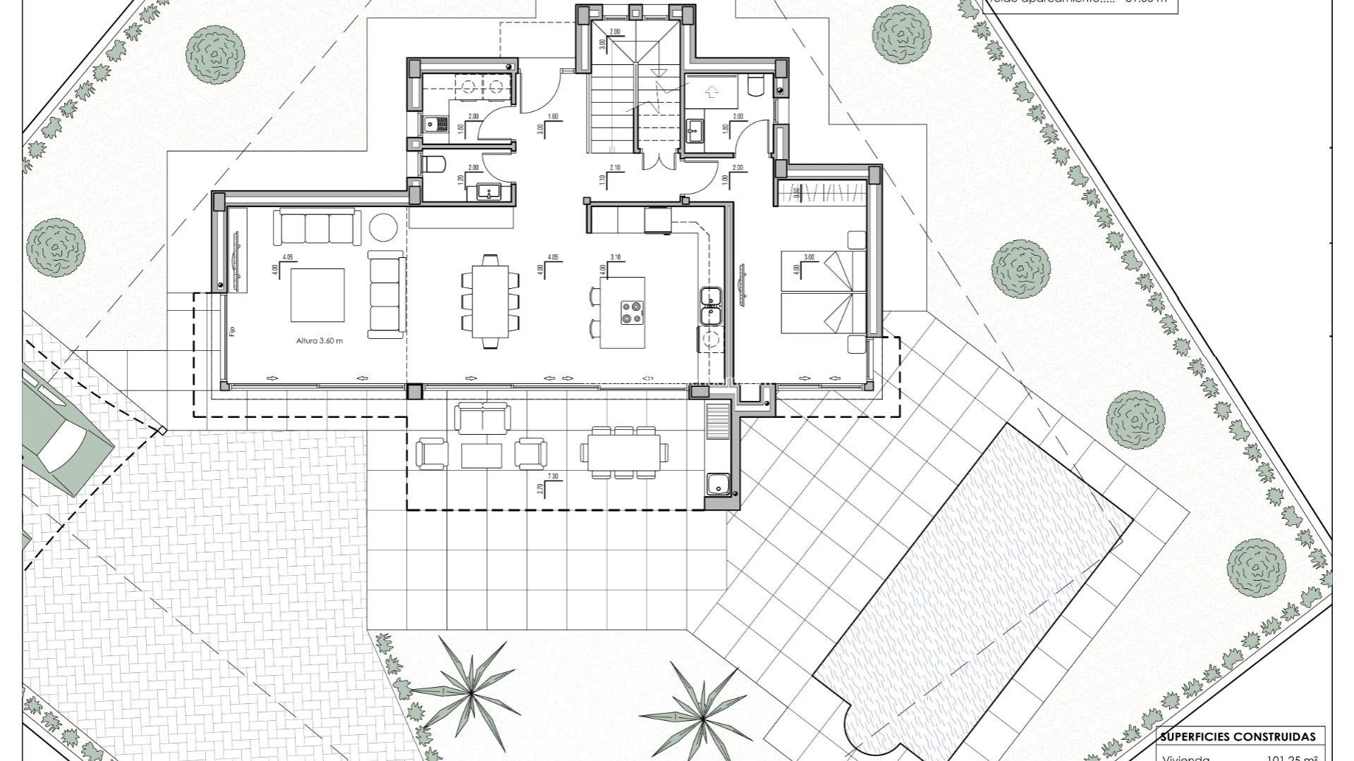 NYBYGGD VILLA MED HAVSUTSIKT I BENISSA Detta vackra hus ligger i en lugn miljö, bara 1 km från den fantastiska Fustera-stranden, som har tilldelats den blå flaggan för sin utmärkta kvalitet på vatten, sand och faciliteter. På stranden finns också en välkänd ekologisk stig som leder till Calpe och erbjuder en hisnande utsikt över vikarna och klipporna längs vägen. Huset ligger inbäddat bland pinjeträd som ger avskildhet utan att hindra panoramautsikten över Medelhavet. Fastigheten är fördelad på två våningar: På huvudvåningen leder ingången till en hall med dörrar till höger till tvättstugan och ett gästbadrum. Till vänster finns en trappa som tar dig till övervåningen och ett sovrum med eget badrum. Vardagsrummet ligger mittemot hallen och omfattar ett rymligt kök med öppen planlösning, matsal och vardagsrum. Vardagsrummet öppnar upp till en terrass som har en pool och en relaxavdelning, perfekt för att njuta av solen, njuta av utsikten eller ha en grillmiddag. Fastigheten är omgiven av anlagda trädgårdar, och på ena sidan finns en täckt pergola med plats för två bilar. På första våningen hittar du sovutrymmena, som består av två sovrum, vart och ett med eget badrum och omklädningsrum. Från sovrummen kan du kliva ut på en uteservering och njuta av den fantastiska havsutsikten. Huset som helhet är inhägnat och har två tillträdesdörrar, en för fotgängare med elektronisk dörröppning och en för motorfordon med fjärrkontroll. Modernt kök med laminatdörrar i kombination med släta vitlackerade dörrar med lådor med stoppare och Silestone bänkskivor på vitt. Inkluderade varor: ugn, mikrovågsugn, vitrokeramikhäll, fläktkåpa, panel kylskåp och panel diskmaskin. Badrummen kommer att förses med vägghängda toaletter från Roca (modellerna The Gap eller Dama). Dessutom ingår tvättställ från Roca (modell Victoria) samt en spegel med integrerad LED-belysning. Duschbrickorna kommer att ha samma finish som husets golv (halkfritt) och ett fast glashandtag. Utomhusområdena behåller den kvalitet och design som planerats för husets inre, både när det gäller användningen av högkvalitativa material och konfigurationen av utrymmena med valfria stadsmöbler. Belysning för utomhusutrymmena runt huset samt för fotgängare, väganslutningar, terrasser och grillplatser ingår. Trädgården är utrustad med ett automatiskt bevattningssystem. Alla trädgårdsytor kommer att vara täckta med grus och ett geotextilnät kommer att finnas på undersidan. Pool på 45 m2 ungefär, inbyggda trappor, subaquatiska ledstrålkastare. Inklusive: filter, pump, elpanel och interiör - mosaikfinish. Den har också förinstallation för uppvärmning med värmepump, ett helt färdigt och asfalterat anläggningsrum, samt ett slutet rum med ventilation där poolanläggningen är inrymd. Parkeringsplats med en yttre pergola är installerad för att skydda fordonen. Utrymmena i ditt hus åtnjuter naturligt ljus genom de stora fönstren. Samt en LED-spotlight inne i hela huset. Luftkonditionering kommer att fungera genom ett luftventilationssystem, inklusive individuell luftkonditionering för varje rum. Det uppvärmningssystem som valts för ditt hus är ett golvvärmesystem som ger en värmefördelning som är anpassad till människokroppens idealiska behov. Dubbelglas med en luftkammare av CLIMALIT-typ som ger solskydd och låg emissivitet. Säkerhetsgrind vid ingången från första kvaliteterna, hus med staket som tillhandahålls inklusive ankar mot hävstång för fastsättning i skiljeväggen, säkerhetsgångjärn, säkerhetslås och en lackerad aluminiumfinish enligt tekniskt projekt. Resten av innerdörrarna följer den allmänna estetiken i ditt hem, med släta vitlackerade dörrar med dolda gångjärn på så sätt skapas ett rent, elegant och tidlöst utrymme (2,40 m högt). Benissa ligger i norra änden av Costa Blanca, precis vid motorvägen A-7. Resan till och från Alicantes flygplats tar drygt en timme. Staden är liten, men förtrollande med sin medeltida arkitektur och charmiga torg. Även om det bara är 5 kilometer till havet - som kråkfågel - är de närmaste stränderna på väg ungefär 11 kilometer bort och kuststäderna Calpe (i söder) och Moraira (i nordost) ligger ungefär 12 kilometer bort. Utsikten över Medelhavet, vädret, den vilda naturen, ljusets kvalitet, städernas arkitektur, Benissa kommer att förföra dig. Alicantes flygplats ligger 1 timme bort.