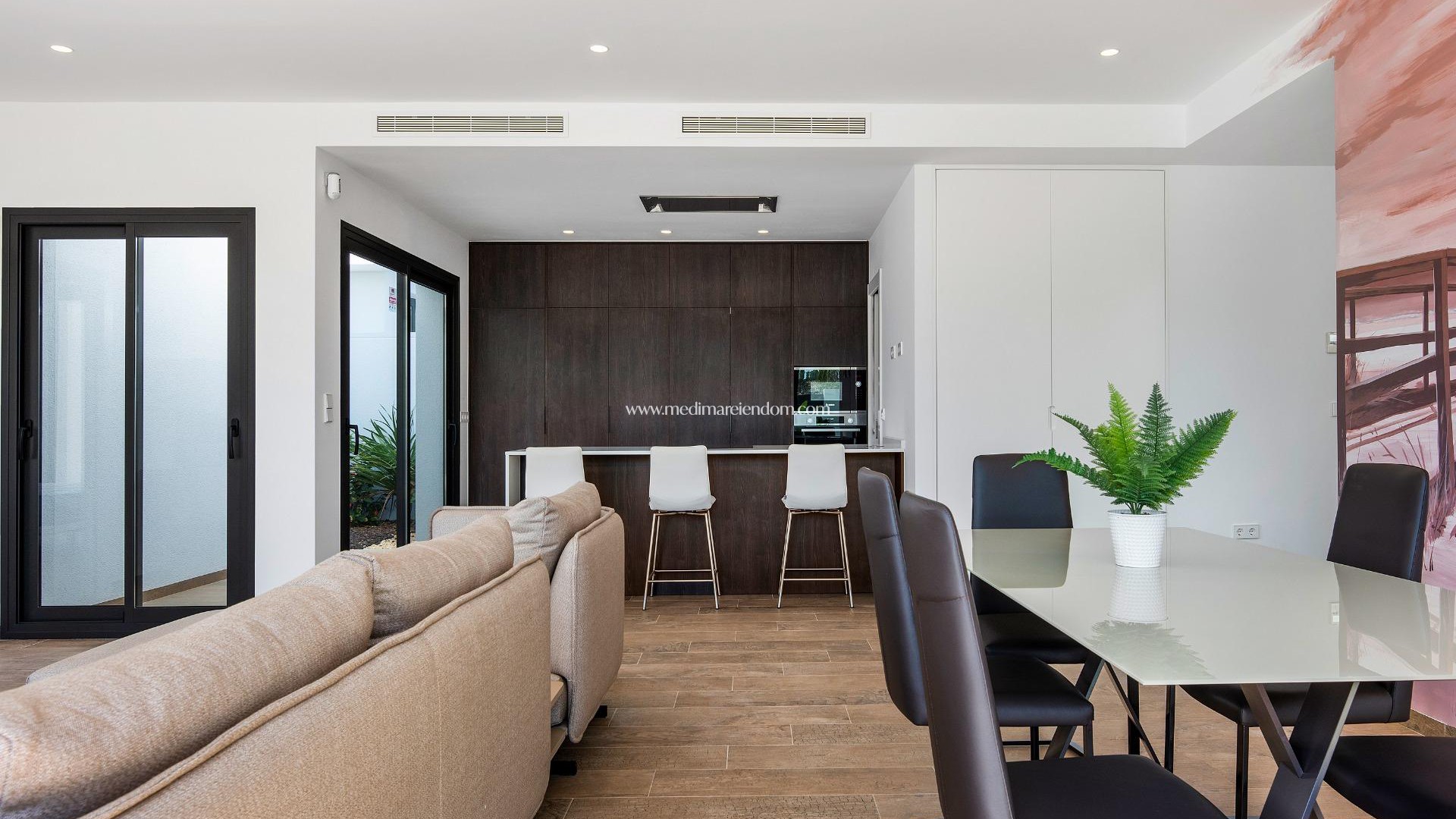 NYBYGGD VILLA PÅ EN VÅNING I CABO DE PALOS Vacker enplansvilla med 3 sovrum och 2 badrum 250 meter från stranden. Villan har ett ljust vardagsrum med modernt öppet kök och skjutfönster som ansluter till den främre terrassen och den privata poolen. Alla sovrum har inbyggda garderober. Det finns också ett stort solarium där du kan sola hela året, en privat parkeringsplats på tomten och trädgården. Villor som ligger några minuters promenad från Cabo de Palos marina, strandpromenaden och restauranger där du kan smaka på det bästa medelhavsköket. Det ligger också bara 12 km från det prestigefyllda hotellet Campo de Golf La Manga Club Resort. Flygplatserna Corvera (Murcia) och Alicante ligger 56 respektive 126 km bort.