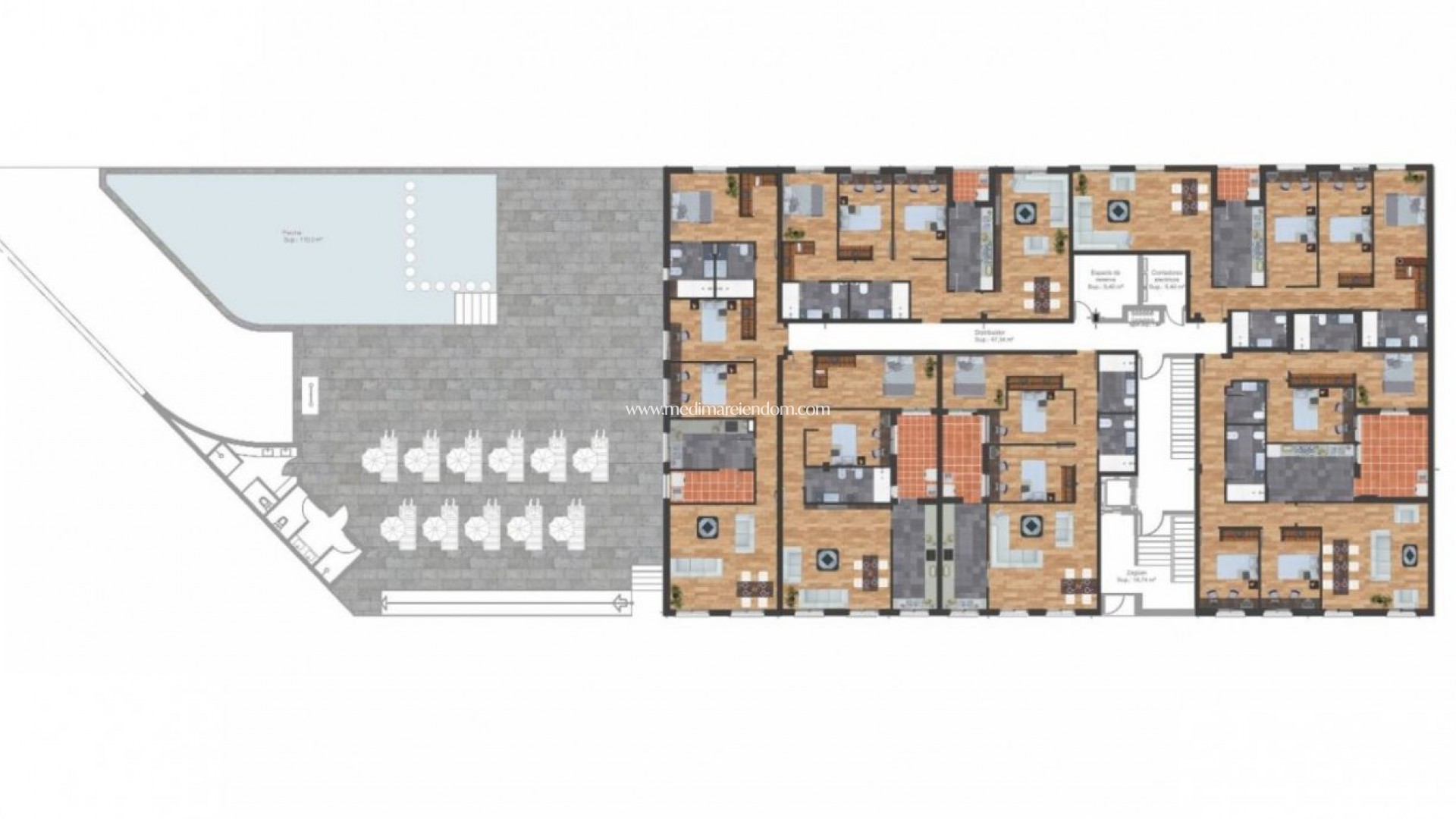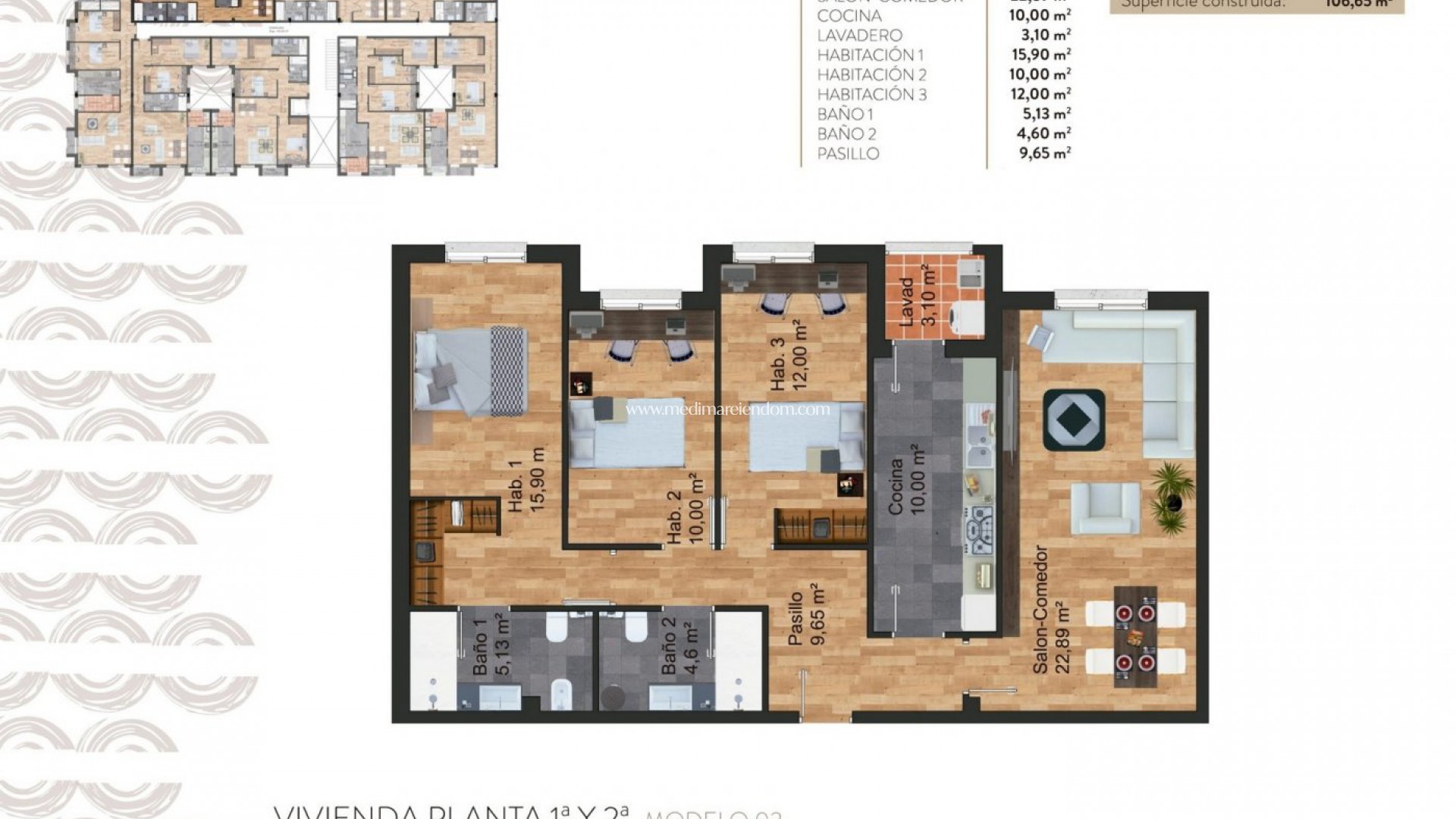 NYBYGGDA LÄGENHETER I TORRE-PACHECO Nybyggda bostadsområden med lägenheter i Torre Pacheco (Murcia) i hjärtat av Costa Cálida. Den första fasen har 22 lägenheter med 2 och 3 sovrum. Komplexet har en gemensam pool och alla lägenheter har ett privat solarium, ett underjordiskt garage och ett förråd. Byggnaden har 3 våningar, det finns 6 lägenheter på bottenvåningen och 8 lägenheter på första och andra våningen. Alla bekvämligheter finns inom räckhåll. Det finns stormarknader, apotek, banker, skolor, barer, restauranger, stranden och flygplatsen ligger bara några minuter bort. Det finns också en golfklubb i staden mycket nära lägenheterna och det finns flera golfbanor inom 10-25 minuters bilresa från lägenheterna. Motorvägen AP-7 ligger också nära och N-332 är också mycket lätt att nå, så du kan lätt resa till andra regioner som Pilar de la Horadada, San Pedro del Pinatar, Orihuela Costa, Torrevieja, Alicante osv. Den internationella flygplatsen Murcia Corvera ligger 20 minuter bort, Alicantes flygplats cirka en timme bort.