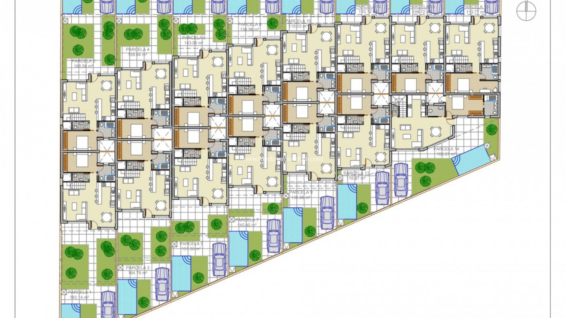 NYBYGGDA RADHUS I ROJALES Nya moderna radhus i Rojales. Radhusen har 3 sovrum, 2 badrum, öppet kök, vardagsrum med direkt tillgång till terrassen, parkeringsplats. Ett alternativ för ett solarium och en privat pool mot en extra kostnad. Det finns en 3 golfbanor i närheten och de blå flaggstränder är bara en kort 10 minuters bilresa bort. Rojales det är en härlig by med alla tjänster som stormarknader, apotek, banker, restauranger och naturpark ligger mycket nära villorna. Det finns flera golfbanor i närheten samt vattenparker i närliggande Rojales och Torrevieja. Flygplatserna Alicante och Murcia ligger 45 minuters bilresa bort.