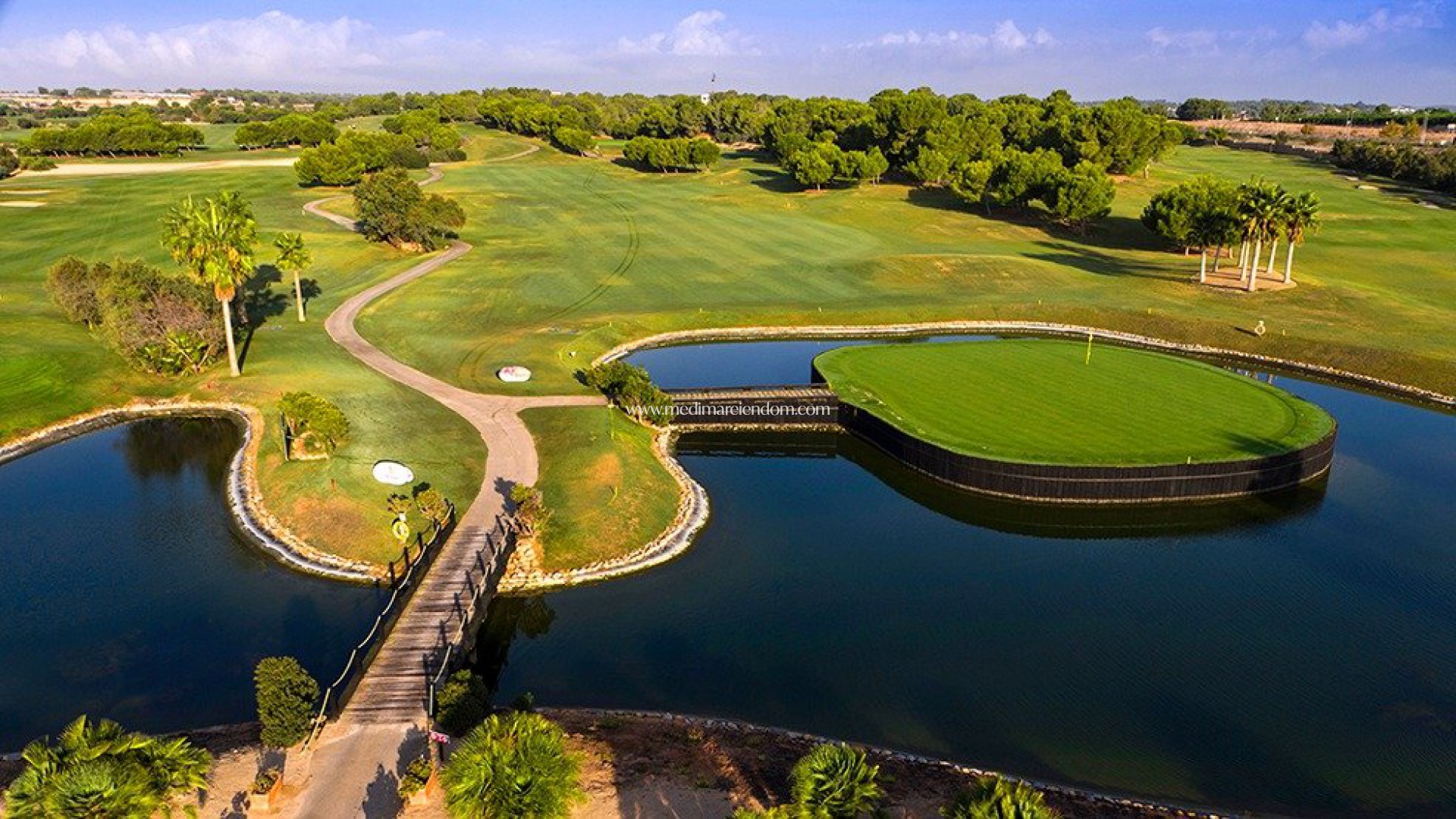 NYBYGGDA VILLOR I PILAR DE LA HORADADA PÅ GOLFBANAN Nybyggnation av ett exklusivt och lyxigt projekt med villor vid Lo Romero golfbanan i Pilar de la Horadada. Exklusiv nybyggd hörnvilla är den perfekta platsen för dig att njuta av ditt liv i Spanien. Sydostläge och med egen pool och parkering. Villan innehåller 3 sovrum och 3 badrum samt har inbyggda garderober. Den ligger på ett avstånd av 100 m från golfbanan och bara 6 km till stranden. Terrassen har 75 m2 och i priset ingår allt utom möblerna, så du kan inreda allt på ditt eget sätt. Pilar de la Horadada är en typisk spansk by i den sydligaste delen av Costa Blanca. På den stora huvudgatan finns stormarknader, massor av affärer, restauranger och barer och några vackra torg. De vackra stränderna Torre de la Horadada och Mil Palmeras med fin sandpromenad ligger bara 5 minuter bort. Lo Romero Golf är den perfekta banan för golfspelare som brinner för golf och Island of Golf är en idealisk bana för golfspelare på alla nivåer. Flygplatserna Corvera (Murcia) och Alicante ligger på 40 respektive 55 minuters avstånd.