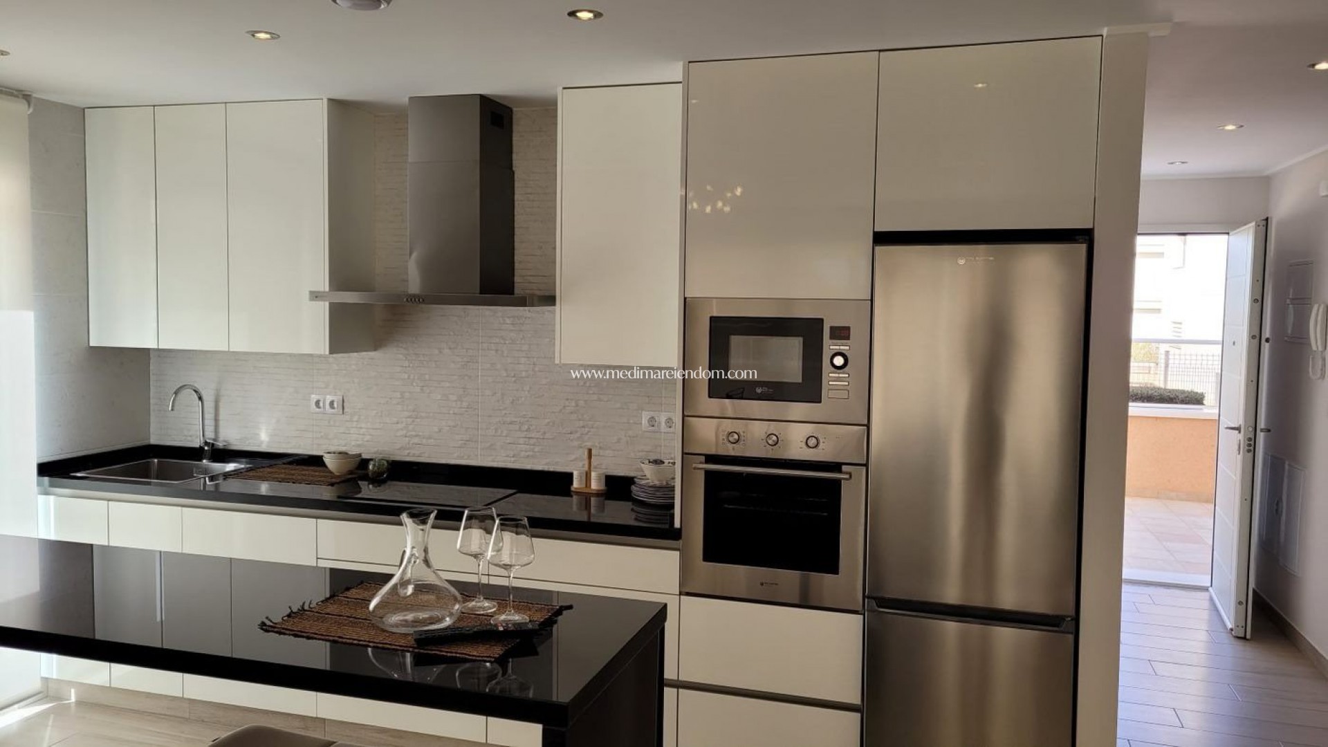 PENTHOUSE I FANTASTISKT BOSTAD PÅ STRANDEN Njut av Costa Blanca med alla bekvämligheter och faciliteter med doften av Medelhavet och dess stränder, som ligger bara 400 meter från detta underbara bostadsområde med trädgårdar, lekplats för de minsta, gemensam pool med jacuzzi och gym, förutom, naturligtvis, utrustad med privat parkering. Ett högkvalitativt hem, 3 sovrum och 2 badrum, stor terrass och solarium med jacuzzi och sommarkök. Med all service och de bästa detaljerna, omgiven av hav, natur, golf och perfekt ansluten till bekväma motorvägar och närliggande flygplatser.