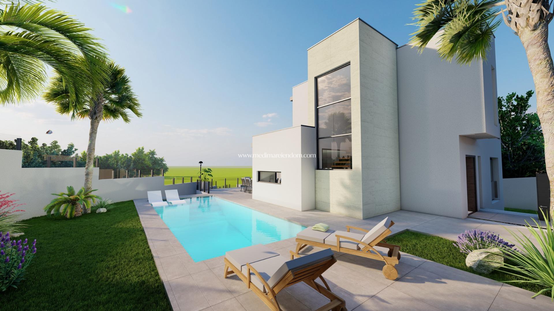 NYBYGGD VILLA I ROJALES Nybyggd modern villa i La Marquesa Golf, Rojales. Villa med stora inre utrymmen, bestående av ett kök, vardagsrum och matsal alla i ett stort öppet område där utformningen av utrymmena råder, 3 sovrum, 3 badrum, dessutom finns det garage i en källare för 2 fordon och 2 utomhusterrasser på 1: a våningen med utsikt över golfbanan. Fastigheten är utvecklad på 2 våningar med en förlängning av 145m2 av bostadsyta plus 95m2 av garageutrymme. Villa bygger en tomt på 450m2 varav 337m2 är avsedda för trädgårdar, utomhusterrasser och poolen. Allt med förstklassiga material och de bästa ytorna. Villa belägen bredvid La Marquesa golfbana i ett lugnt område och bara 10 minuter från kusten. Rojales är en traditionellt jordbruksstad som har blivit en av favoritdestinationerna i det inre av Vega Baja, tack vare sitt strategiska läge nära N-332 och AP-7. De utmärkta förbindelserna gör att du kan nå Alicantes flygplats på 20 minuter och njuta av stränderna i Guardamar, La Mata eller Torrevieja på 15 minuter. Rojales erbjuder ett rikt och varierat gastronomiskt och fritidserbjudande och har den prestigefyllda golfbanan La Marquesa Golf. La Marquesa Golf är en av de mest historiska banorna på Costa Blanca, med 18 hål och ett lika speciellt som det 17:e hålet på Sawgrass. Tradition, kvalitet och erfarenhet samlas för att erbjuda golfare som besöker oss en unik upplevelse, full av historia där.