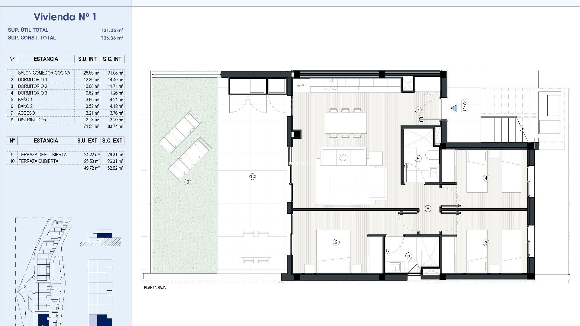 NYBYGGDA BOSTADSOMRÅDEN I FINESTRAT Nybyggda bostadsområden med lägenheter, takvåningar och radhus i Balcon de Finestrat. Vackra lägenheter på bottenvåningen med privata trädgårdar, lägenheter på mellangolvet med stora terrasser och takvåningar med privat solarium. Fastigheter med 2 och 3 sovrum, 2 badrum, öppet kök med vardagsrum, inbyggda garderober, installation av luftkonditionering (varm/kall). Bostadsområdet består av gemensam pool för vuxna med barnpoolområde och solarium, parkeringsplats för cyklar, lekplats för barn kaklad med kontinuerlig säkerhetsbeläggning. Alla fastigheter har privat parkeringsplats med förinstallation för elektrisk laddning av fordon. Bostadsområde perfekt beläget i en naturlig enklav på Costa Blanca och erbjuder en otrolig utsikt över Benidorms skyline, Finestratbukten och El Puig Campana. Benidorm ligger bara fem minuters bilresa från fastigheterna och erbjuder alla tjänster du kan behöva, inklusive affärer, barer, restauranger, stormarknader, banker, apotek och flera privata internationella skolor. Nära till stränderna Levante, Poniente och Cala de Finestrat, med mer än 6 km längd som är bland de bästa i Europa som tilldelats blå flaggor av Europeiska unionen. Alla fritidstjänster som temaparkerna Aqua Natura, Terra Mítica, Terra Natura, Aqualandia och Mundomar, golfbanorna Sierra Cortina och Villaitana, vandring och klättring i Puig Campana, en ojämförlig naturmiljö, eller nautiska sporter. Avstånd till havet 4 km, till flygplatsen 26 km och till golfbanan 1 km. Komplexet ligger 40 minuter från Alicantes flygplats.