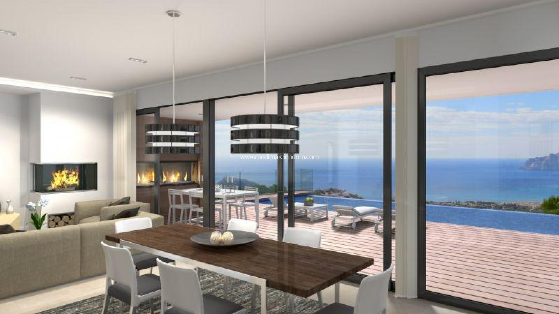 LYXVILLA I EXKLUSIV URBANISERING Denna villa är designad för att njuta av den fantastiska utsikten över havet, klimatet och ljuset från Medelhavet. Med stora fönsterpartier som släpper in ljus och värme från solen, matsal och utevardagsrum med öppen spis och flera terrasser att sola och njuta av utomhus. Den har 3 sovrum, alla med badrum en suite, master bedroom har förutom att ha ett rymligt badrum en suite med badkar och dusch, även ett omklädningsrum och privat terrass. Entréplanet består av ett stort kök med en central ö med eldstad och bardisk, tvättstuga, skafferi och tillgång till både exteriör och invändig matsal. Stort vardagsrum med öppen spis, ett TV/biorum, sommarmatsal och en mysig relaxavdelning med öppen spis, en stor terrass där infinitypoolen ligger, sammansatt av olika miljöer för att njuta av de soliga dagar som den erbjuder oss medelhavsklimatet. På bottenvåningen hittar vi ett fritidsrum med en stor privat terrass. Fastigheten är helt inhägnad, har täckt parkering för två fordon och ett utstuderat inrednings- och landskapsprojekt som gör att den kan anpassas till sina ägares smaker och behov, en unik lyxvilla på norra Costa Blanca. Bostäder som åtnjuter alla tjänster som erbjuds av en konsoliderad urbanisering som Cumbre del Sol, som har ett kommersiellt område med en stormarknad, frisör, apotek, barer och restauranger, Lady Elizabeth Junior School internationella skola och ett mångsidigt sportutbud med tennis och paddeltennis banor, vandringsleder, ridcenter, strand och vikar med strandbarer.