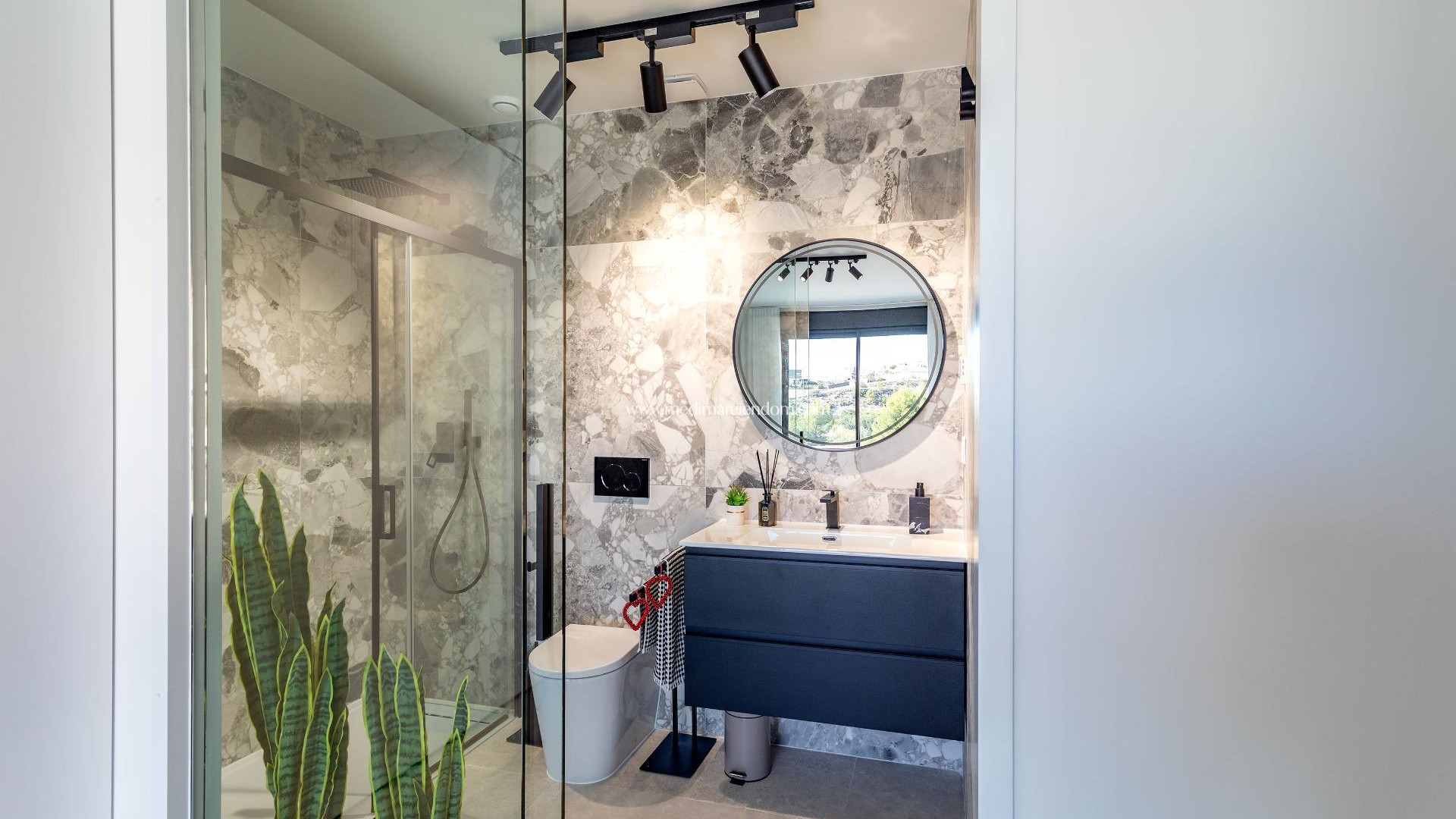 NYBYGGT BOSTADSOMRÅDE I FINESTRAT Nybyggt unikt och exklusivt bostadsområde i Balcon de Finestrat. Detta komplex av moderna lägenheter och takvåningar alla med 2 sovrum, 2 badrum, kök med öppen planlösning med vardagsrum och matplats och terrasser. Takvåningar med privat solarium. Varje fastighet har underjordisk parkeringsplats och förråd. Gated bostadsområde med gemensam pool för att njuta av en av de bästa platserna på Costa Blanca. Det är en fantastisk möjlighet och privilegium att kunna leva med denna miljö av golf och strand, nära till alla bekvämligheter av alla tjänster som anses vara en av de bästa platserna att investera. Finestrat ligger i Marina Baixa-regionen på Costa Blanca. Benidorm ligger bara fem minuters bilresa från fastigheterna och erbjuder alla tjänster du behöver, inklusive butiker, barer, restauranger, stormarknader, banker, apotek och flera privata internationella skolor. Nära till stränderna Levante, Poniente och Cala de Finestrat, med mer än 6 km längd som är bland de bästa i Europa som tilldelats av Europeiska unionen med blå flaggor. Alla fritidstjänster som temaparkerna Aqua Natura, Terra Mítica, Terra Natura, Aqualandia och Mundomar, Sierra Cortina och Villaitana Golfbanor, vandring och klättring i Puig Campana en ojämförlig naturlig miljö eller njut av nautiska sporter. Avstånd till havet 4 km, till flygplatsen 26 km och till golfbanan 1 km. Komplexet ligger 40 minuter från Alicante flygplats.