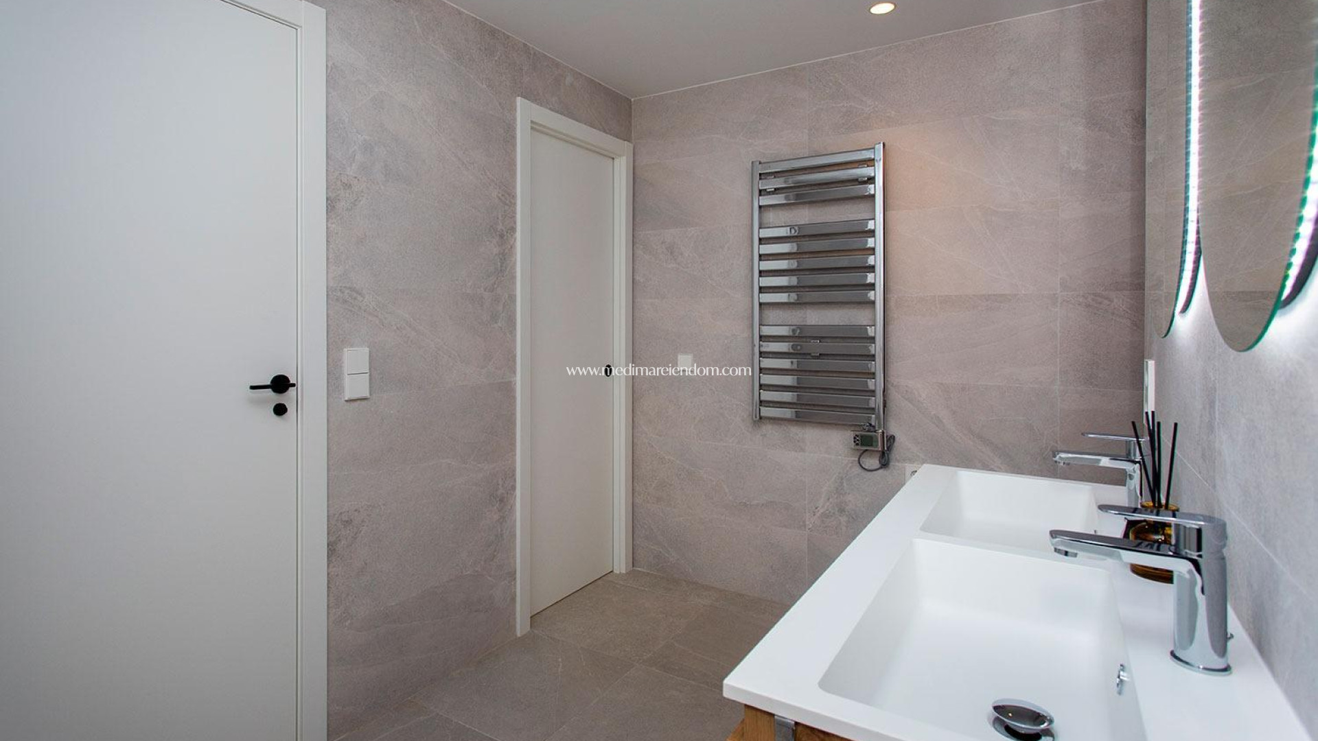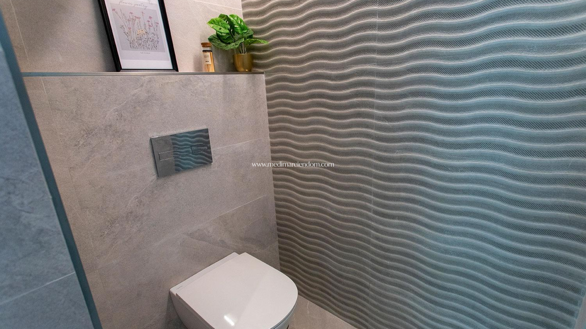 NYPRODUCERADE RADHUS I TORRE DE LA HORADADA Nybyggnadsprojektet sticker ut för sin exteriördesign, en kombination av rena linjer och belagda element, vilket ger en unik, modern och elegant stil till detta strandhem. Med sydostlig orientering och beläget i ett etablerat bostadsområde, gör det till ett idealiskt hem för att njuta av Medelhavslivet. Dess inre distribution förtjänar också särskild uppmärksamhet, detaljer som har noggrant genomtänkts för att ge maximal komfort för sina ägare och förbättra utrymmets estetik. Därför har man på bottenvåningen skapat ett "öppet och ljust" utrymme där vardagsrum, matsal och kök är anslutna via skjutdörrar till en inre uteplats för utomhusbruk och njutning året runt. Enkelhet är nyckeln till den här kollektionen. Återigen, med en enkel vit metallstruktur och glasräcke, blir trappan det perfekta komplementet för att bibehålla ljusstyrkan och rymden från entrén. Ett sovrum med tillgång till uteplatsen och ett badrum kompletterar fördelningen av denna våning. Detta radhus väntar fortfarande på en mycket speciell del: dess övervåning. När du klättrar uppför trappan når du ett chill out-utrymme, förrum till solarium: ett mysigt hörn med läsyta och skrivbord. Denna multifunktionella landning ger plats för två rymliga sovrum, ett av dem med privat terrass och båda delar ett elegant badrum med sin 10m2 yta. Torre de la Horadada ligger söder om Alicante i ett vackert läge vid kusten. De vackra stränderna i Torre de la Horadada och Mil Palmeras har fin sand vacker strandpromenad. Det finns massor av restauranger, barer och butiker, även vattensporter, dykning och snorkling. Det är bra förbindelser bara 40 minuter från Alicante och Murcias Corvera flygplatser, med stora kommersiella köpcentra och flera golfbanor inom räckhåll.